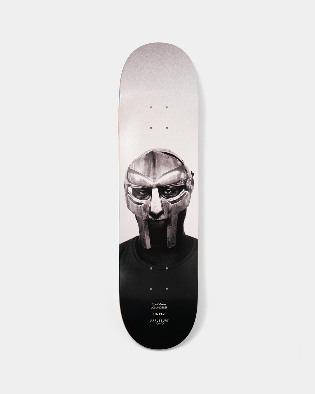 伝説的MC・MF DOOMのポートレートをフロントに大胆に配した、APPLEBUM × Eric Colemanによるコラボレーション・スケートデッキ。