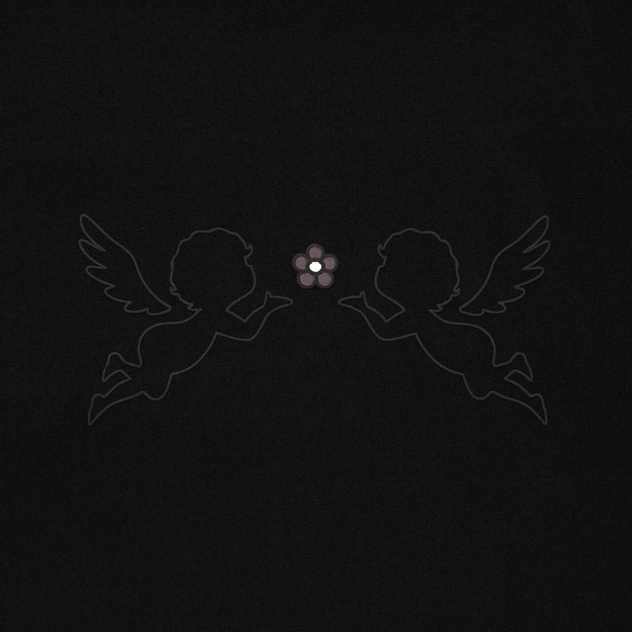 2体の天使と中央に配置されたフラワーが特徴的なTシャツ。