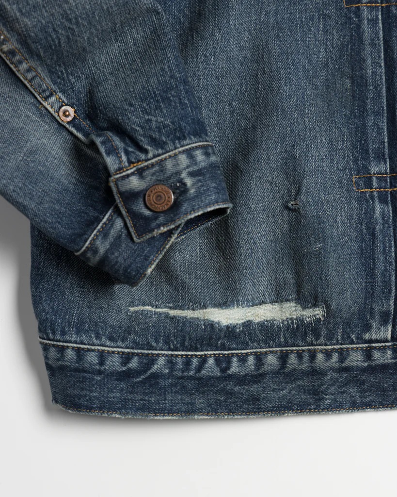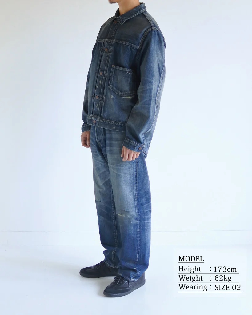 This basic denim jacket is based on the 70502XX 1st type silhouette with refined details.
