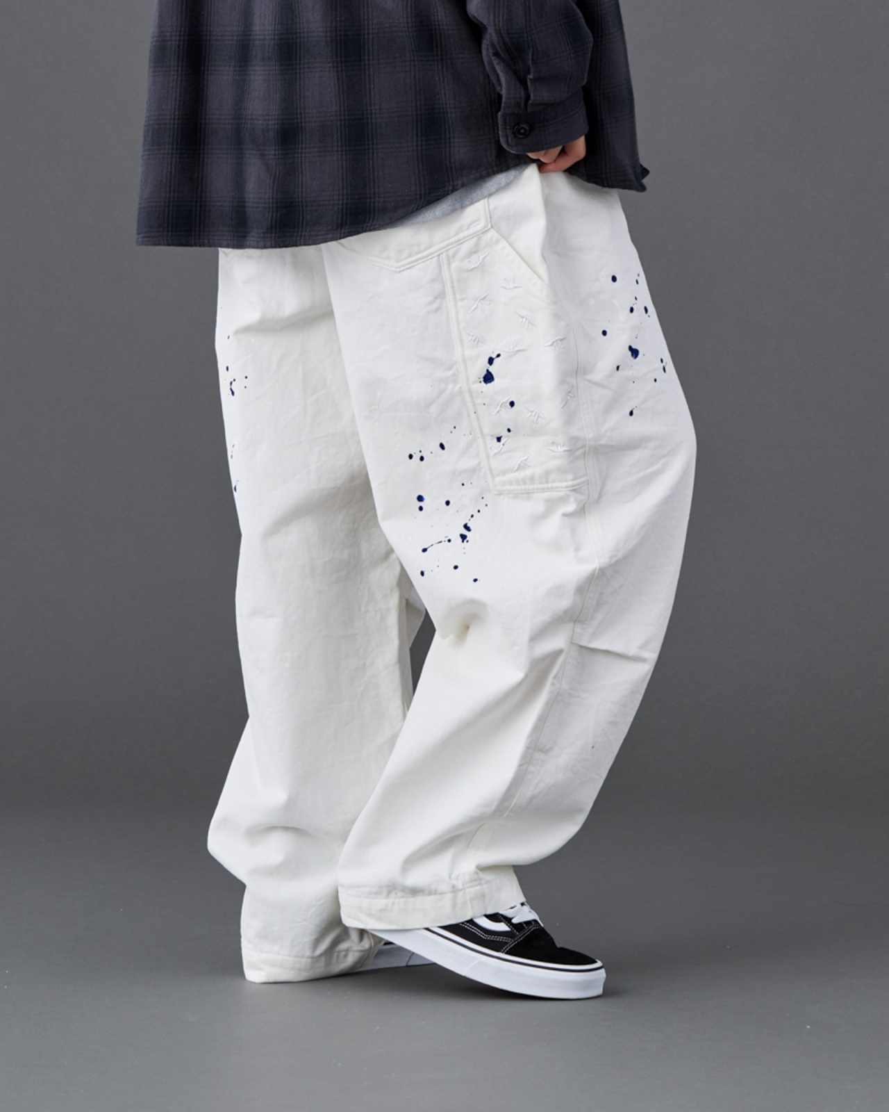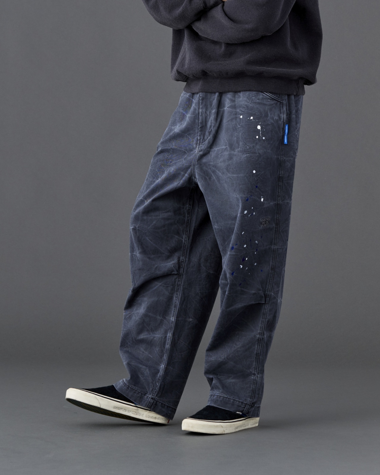 硫化染料のコットンツイルを使用し職人の手で独特の加工感に仕上げたサルエルチノペインターパンツ。