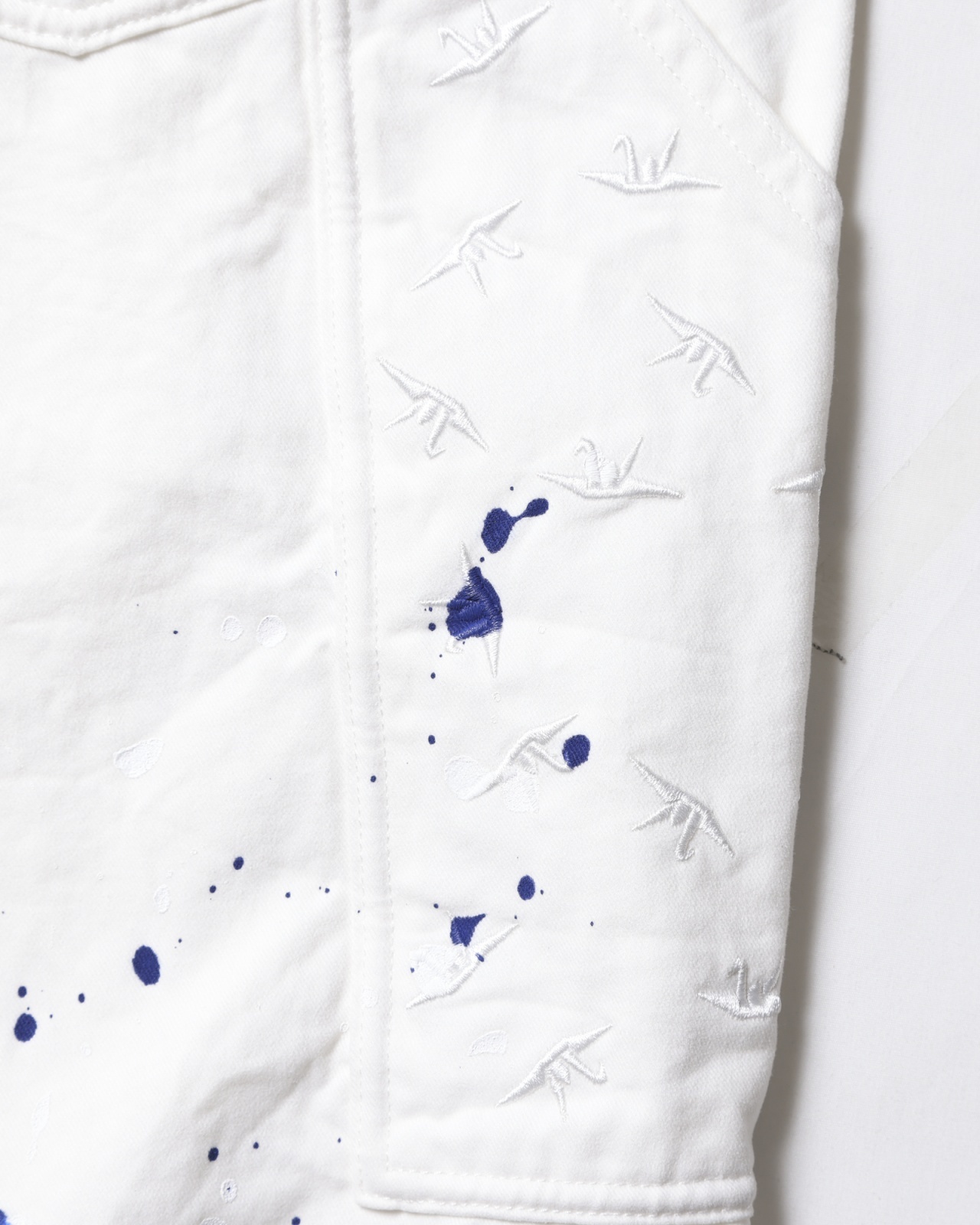 背面のスパナポケットには折り鶴同色刺繍が総柄で入ります。