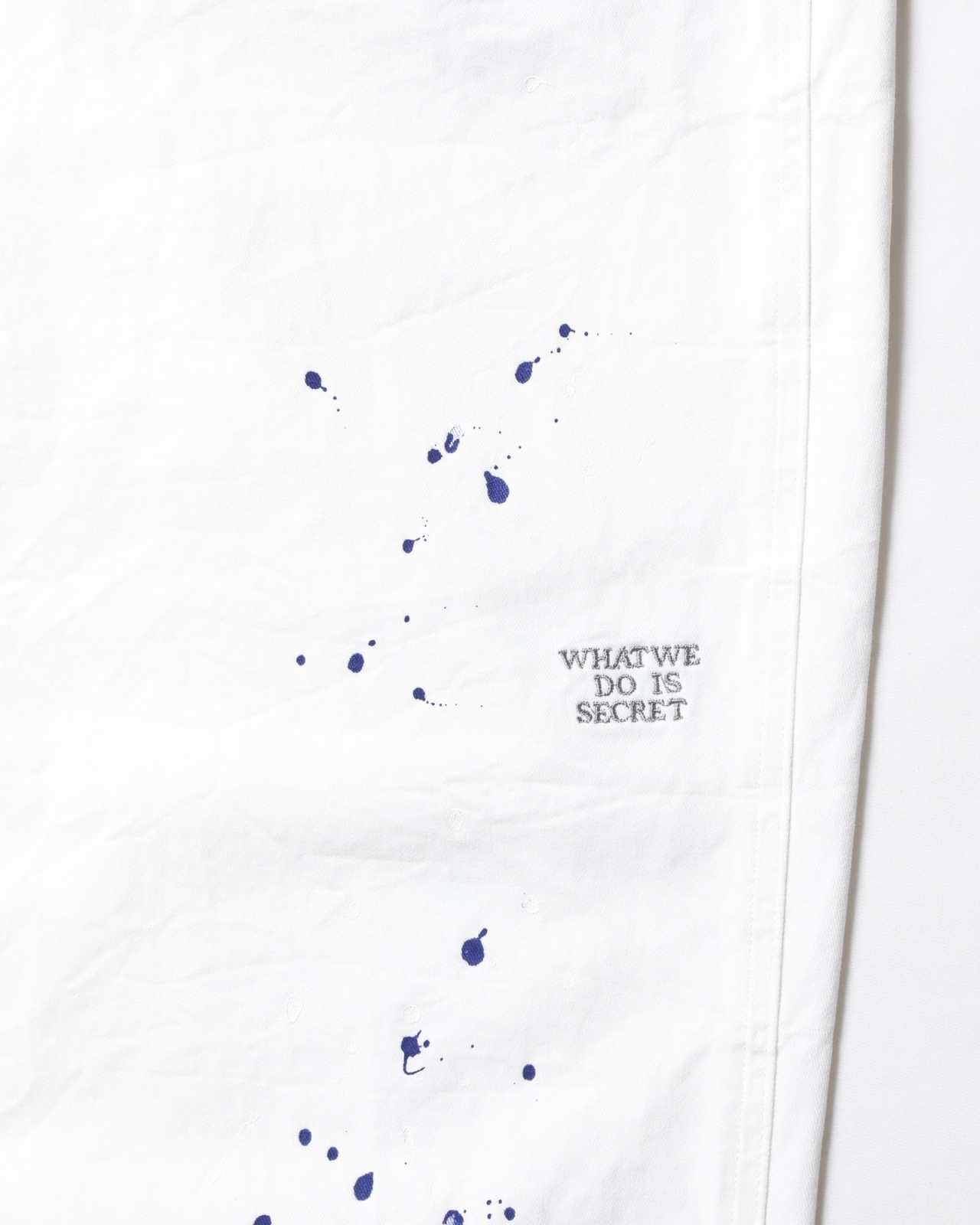 左腿に WHAT WE DO IS SECRET の同色刺繍が入ります。