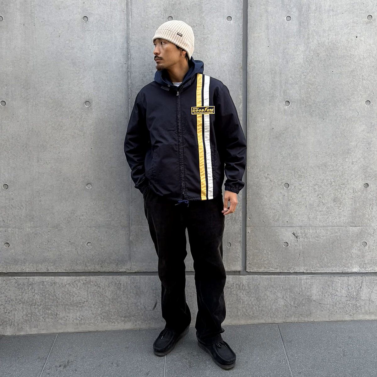 ボディは60年代のレーシングジャケットをベースに、生地は丈夫で防風性に優れたコットンウェザー生地を使用しています。
