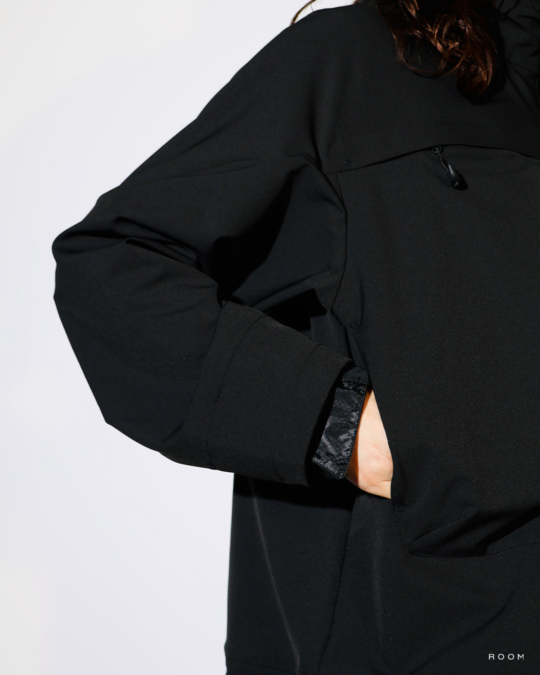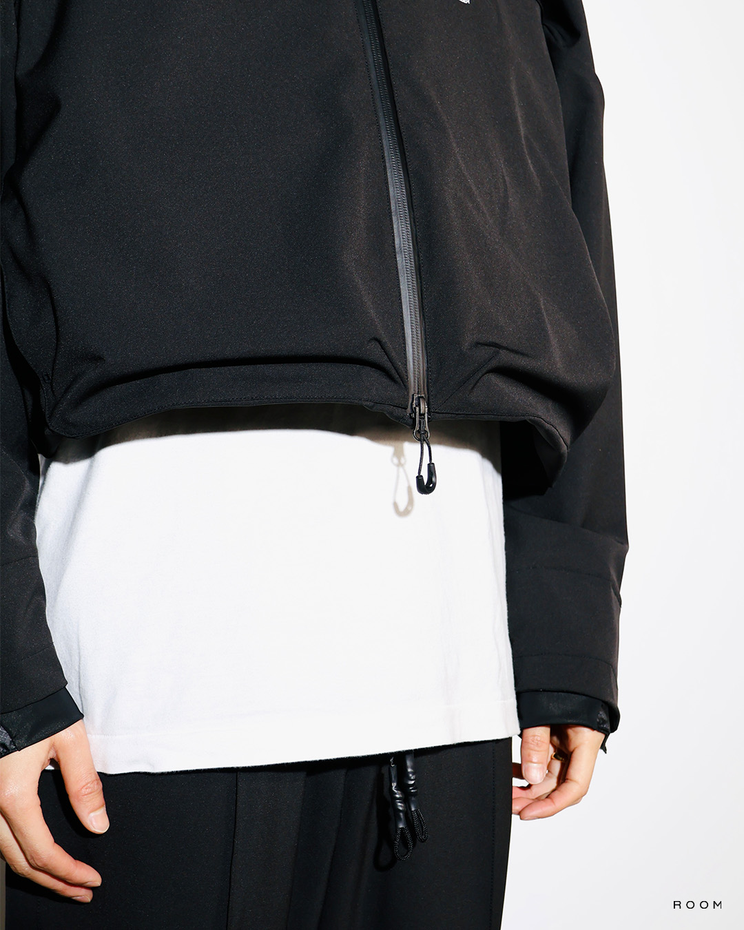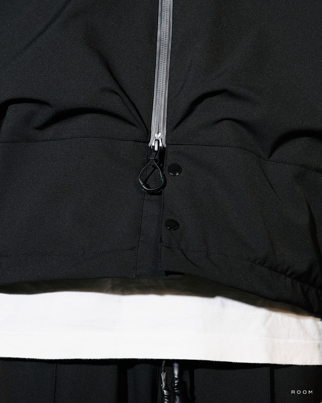 The length of the garment is 2-way, and when you want to extend it in the short length mode, burst the YKK QUICK FREE ZIP.