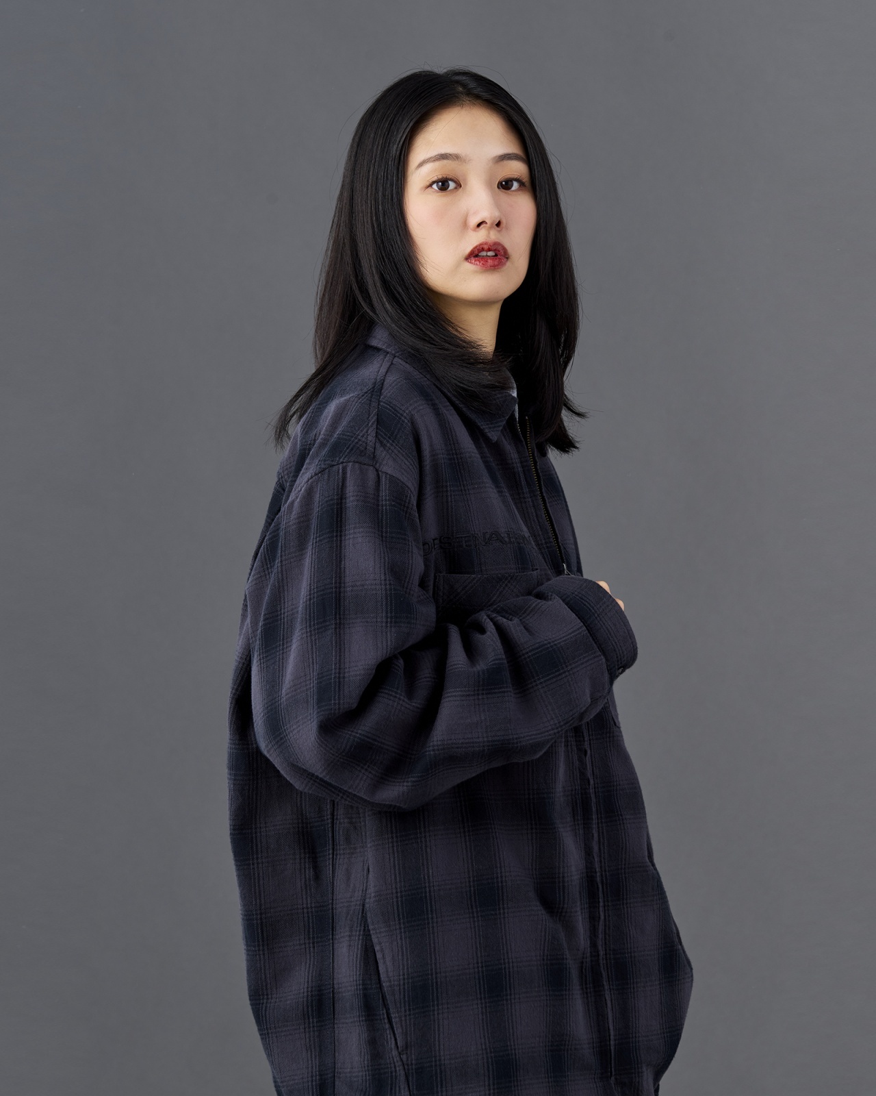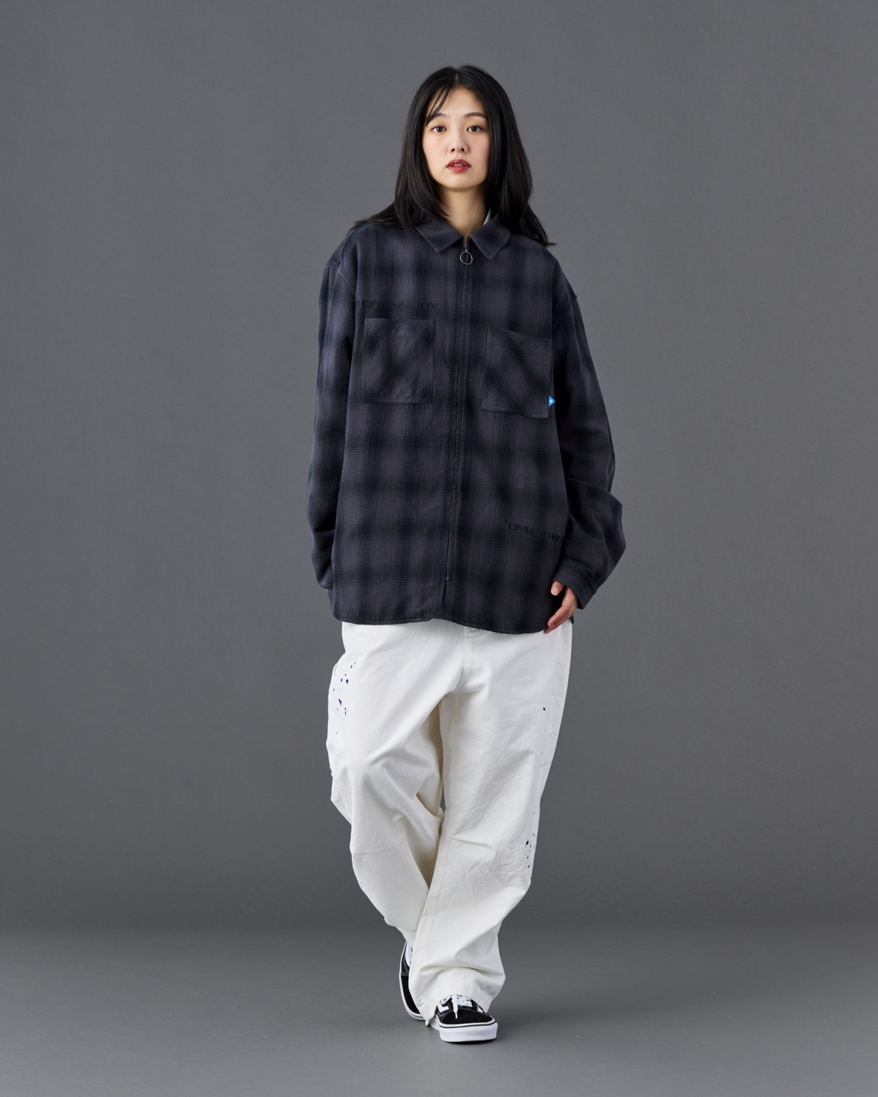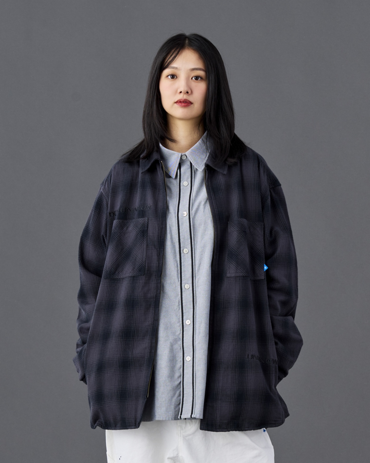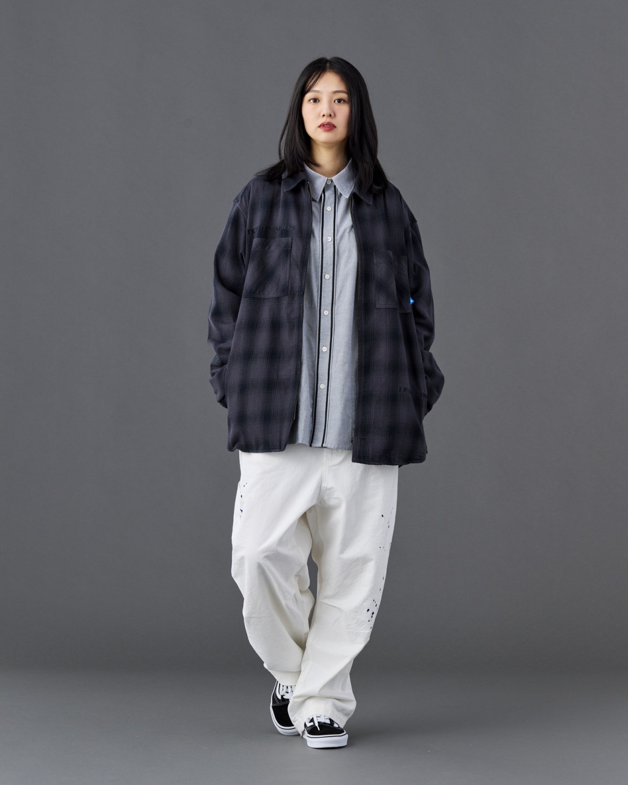 地厚でしっかりした国産オンブレ生地を使用した ZIP シャツ。