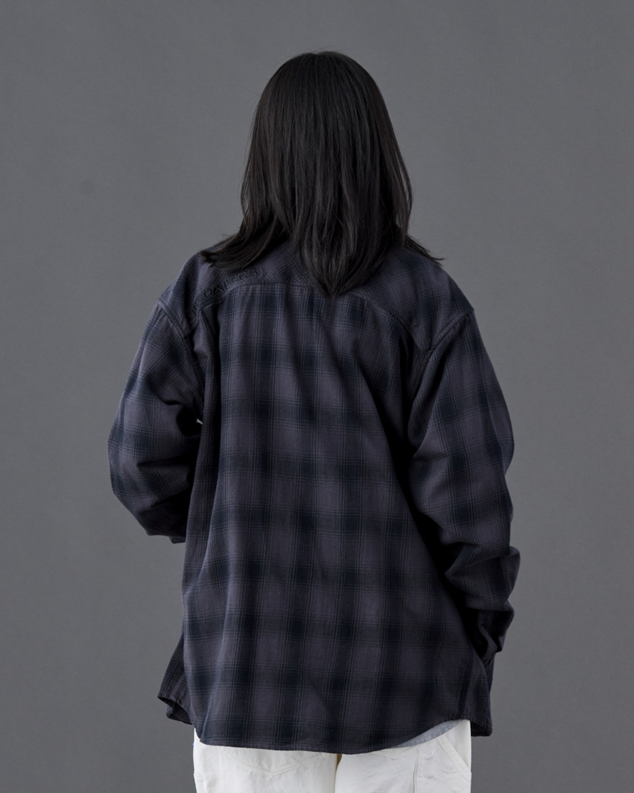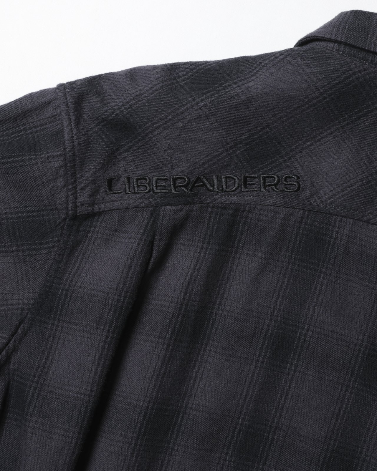 背面ヨークには LIBERAIDERS の同色刺繍が入ります。