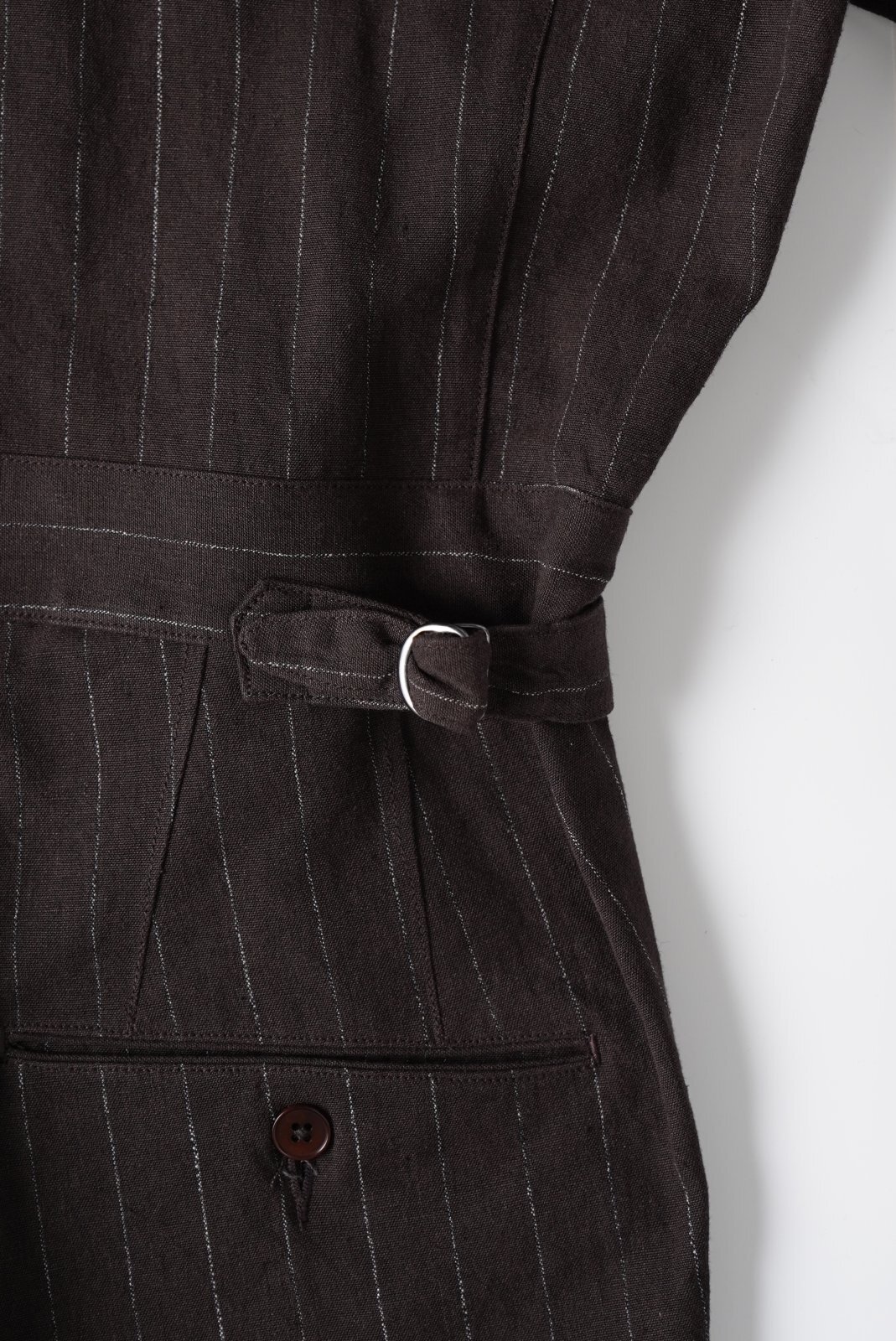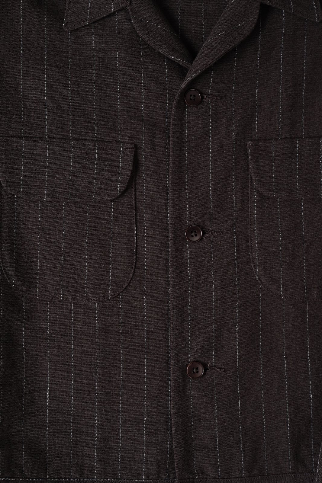 リネンTOP糸と綿麻の混紡糸を強撚して高密度で製織し、強撚による硬さと、生地規格による詰まり感が独特の風合いを感じることができる。