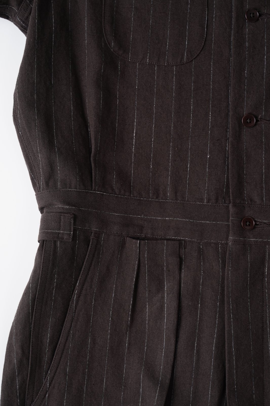 夏の装いに必要不可欠な開襟シャツとプリーテッドスラックスをドッキングさせたかのようなユニークなデザインが目を引きます。