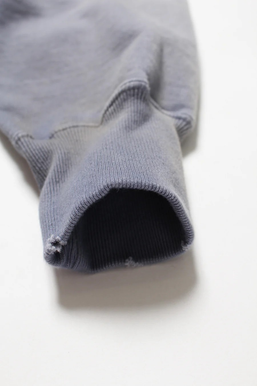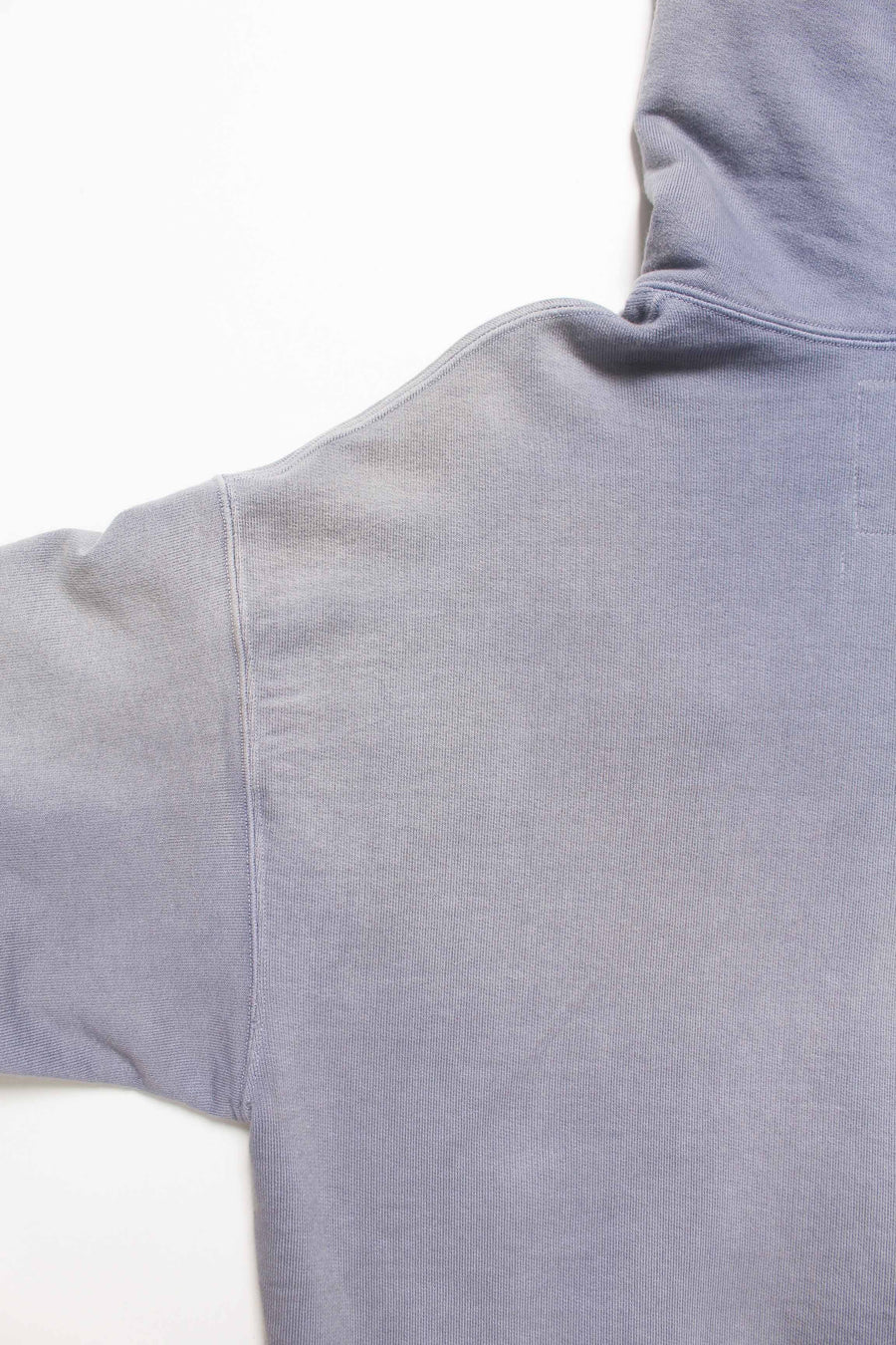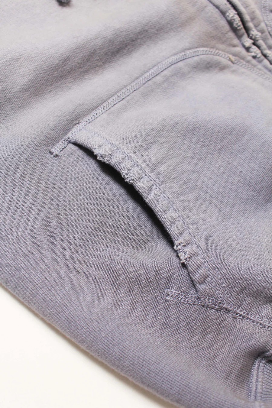 Made from heavy, non-brushed French terry with a special knitting machine’s vintage texture, finished with realistic aging for a rough yet solid presence.