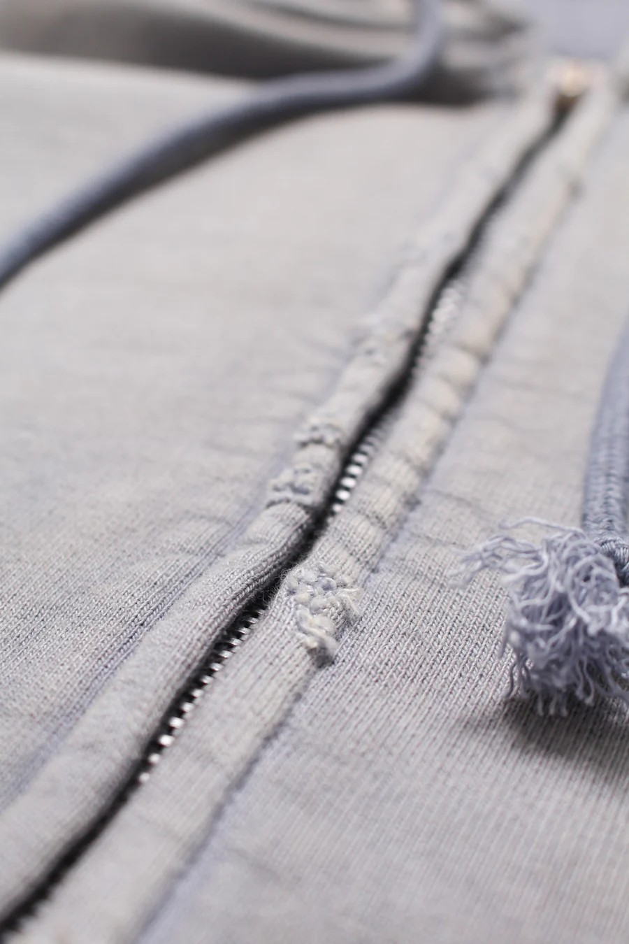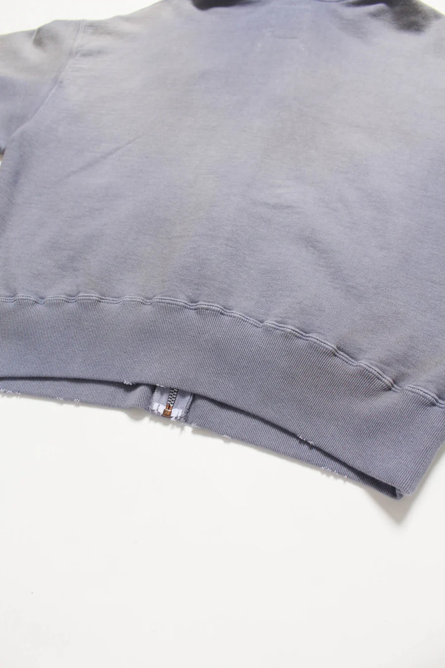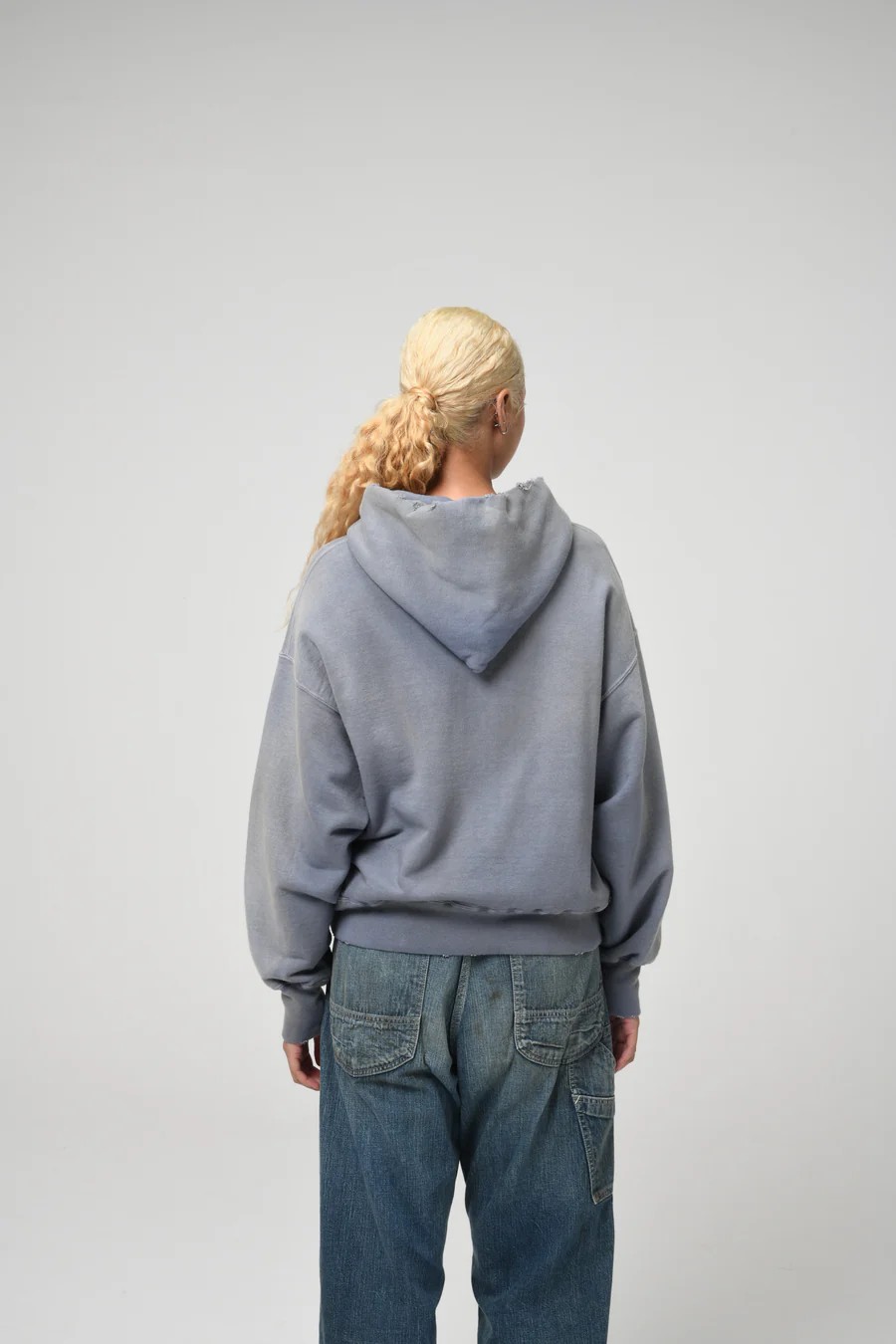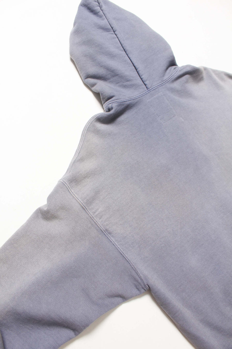 Made from heavy, non-brushed French terry with a special knitting machine’s vintage texture, finished with realistic aging for a rough yet solid presence.