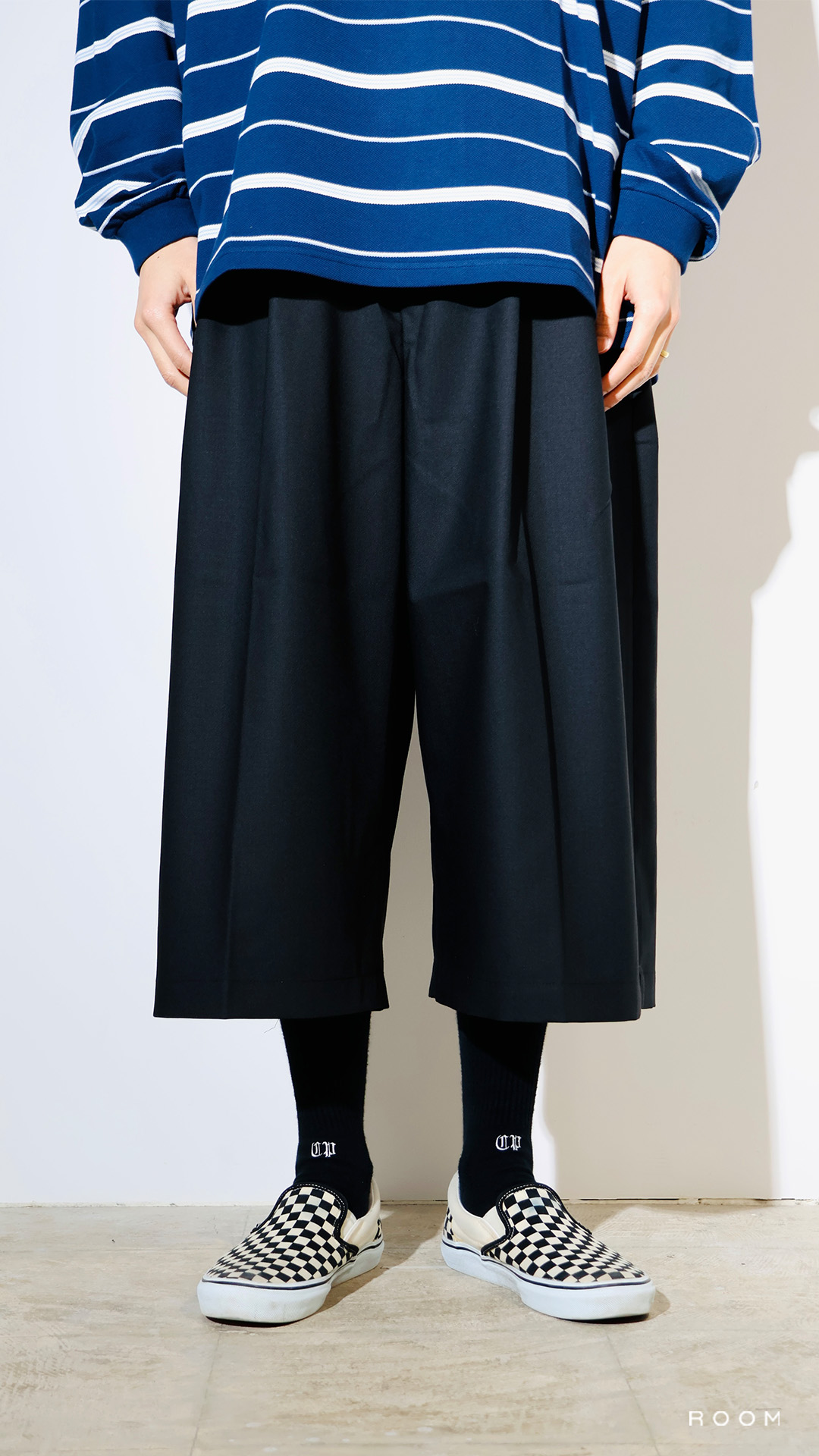 2タックの8分丈ワイドシルエット。