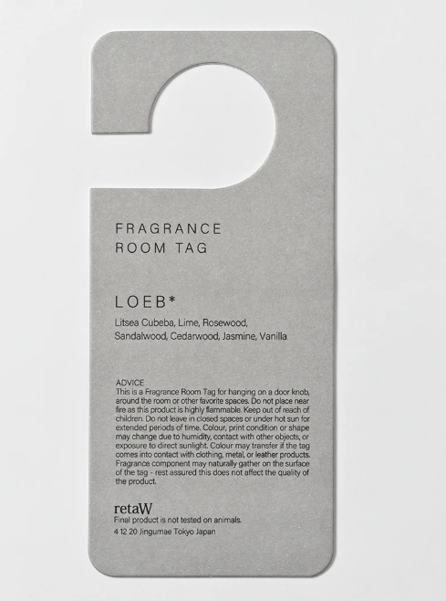 ドアノブ、タオルハンガー、クローゼットなどに掛けて香りを楽しむフレグランス・ルームタグ。