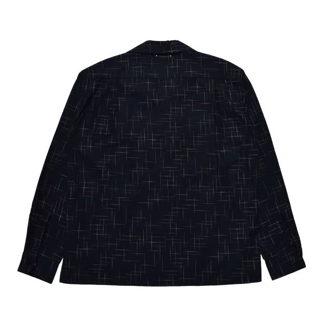 細かな粒子が散ったようなカスリ柄プリントが印象的な、表情豊かなロングスリーブのオープンカラーシャツ。