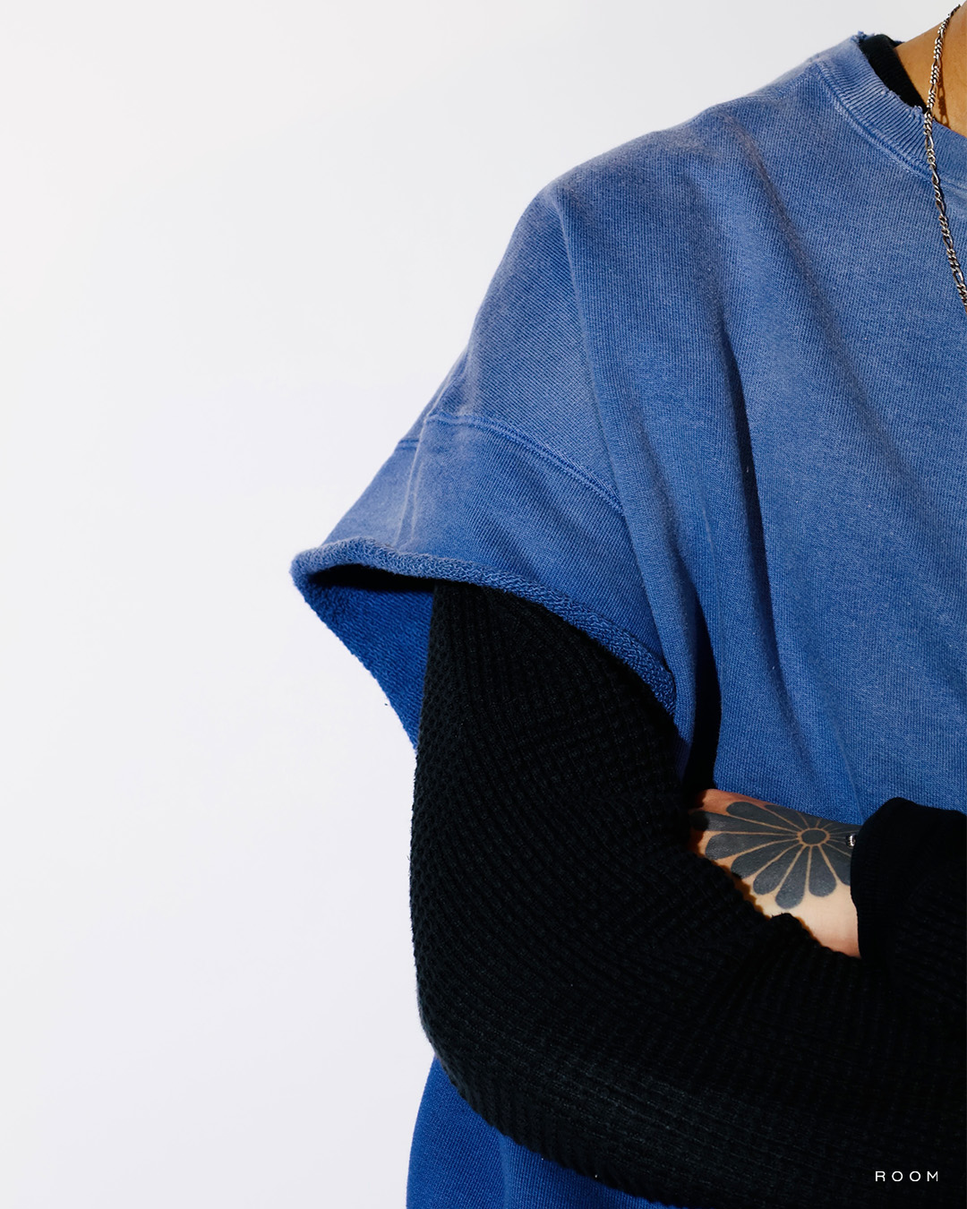 1950〜60年代にクルースウェットの袖をカットオフして着用されていた個体を背景に、そのラフな改変を一つのスタイルとして捉えたデザイン。