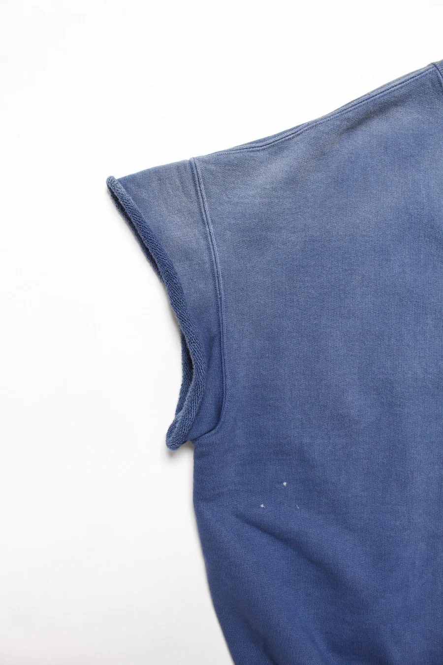 Inspired by 1950s–60s crew sweatshirts cut off at the sleeves, treating that rough alteration as a style born from the field.