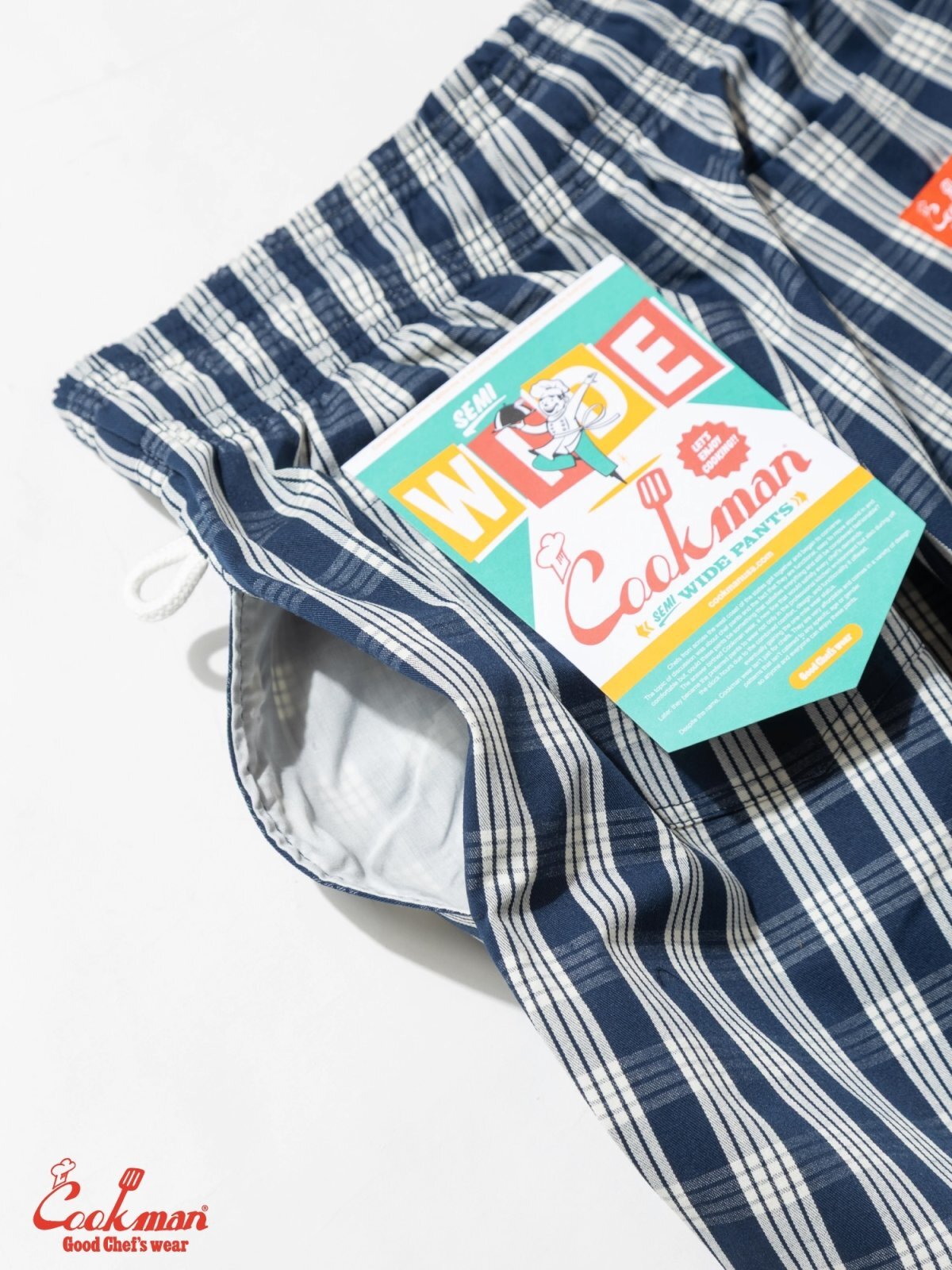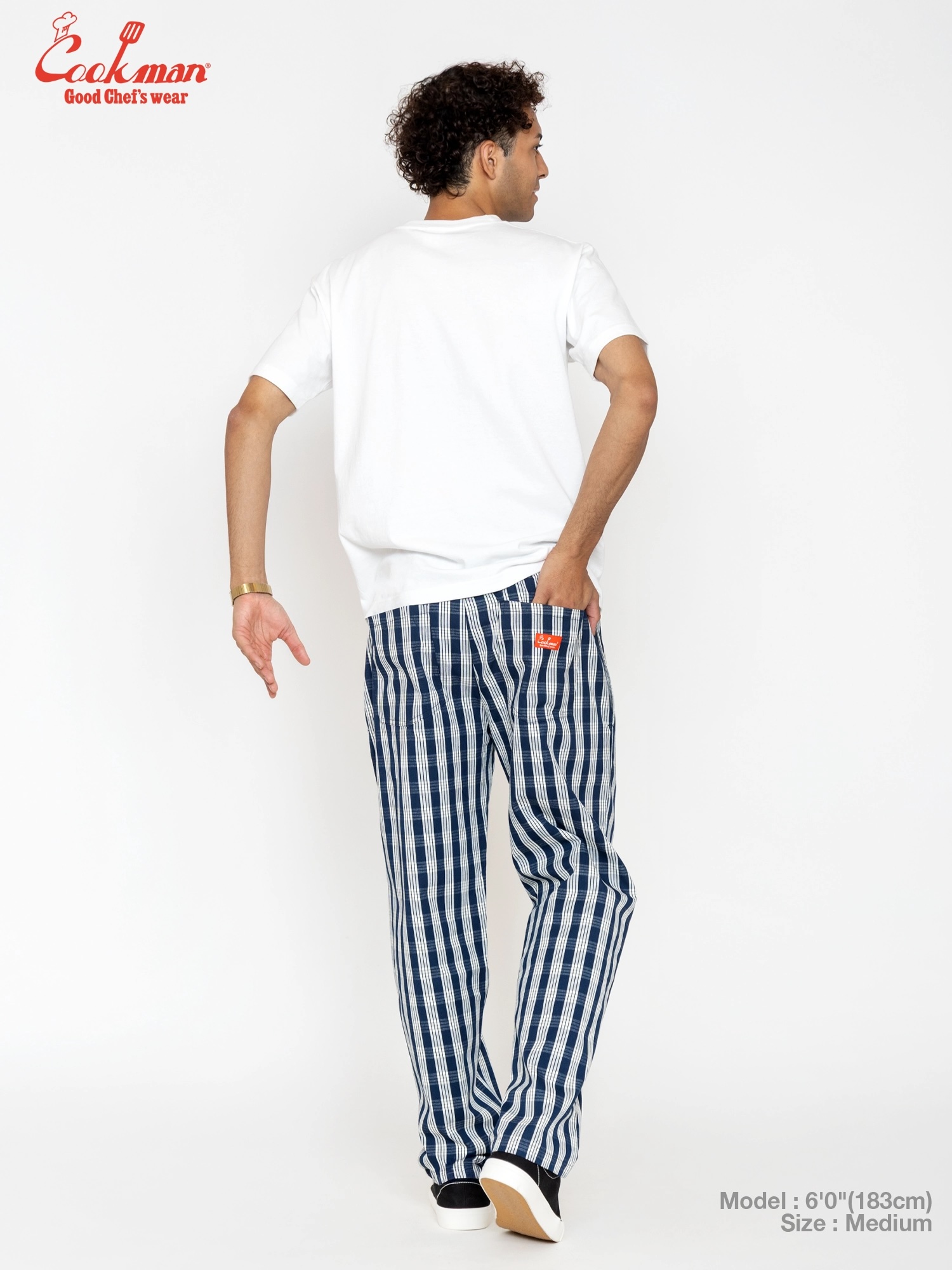 COOKMAN シェフパンツ Chef Pants Semiwide PALAKA Check Navy [231-61806]