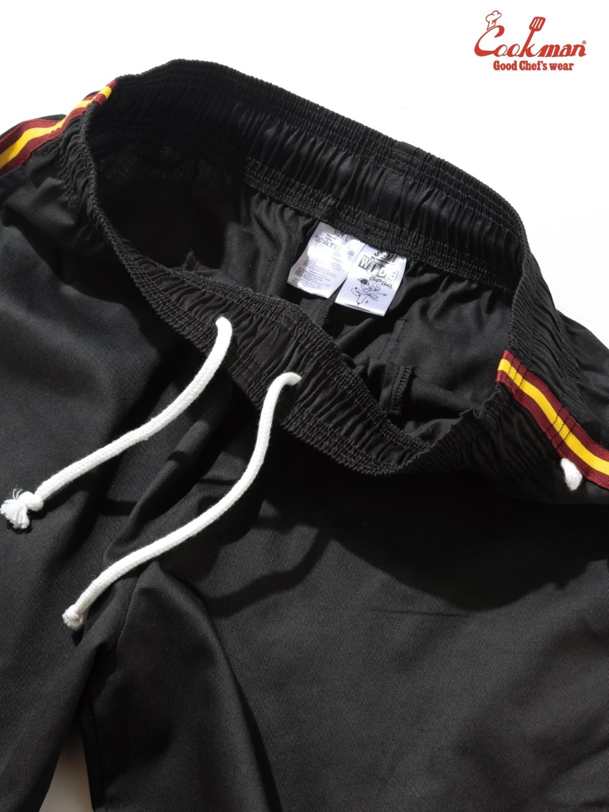 COOKMAN シェフパンツ Chef Pants Semiwide Wienerschnitzel Side Line Black [181-61881]