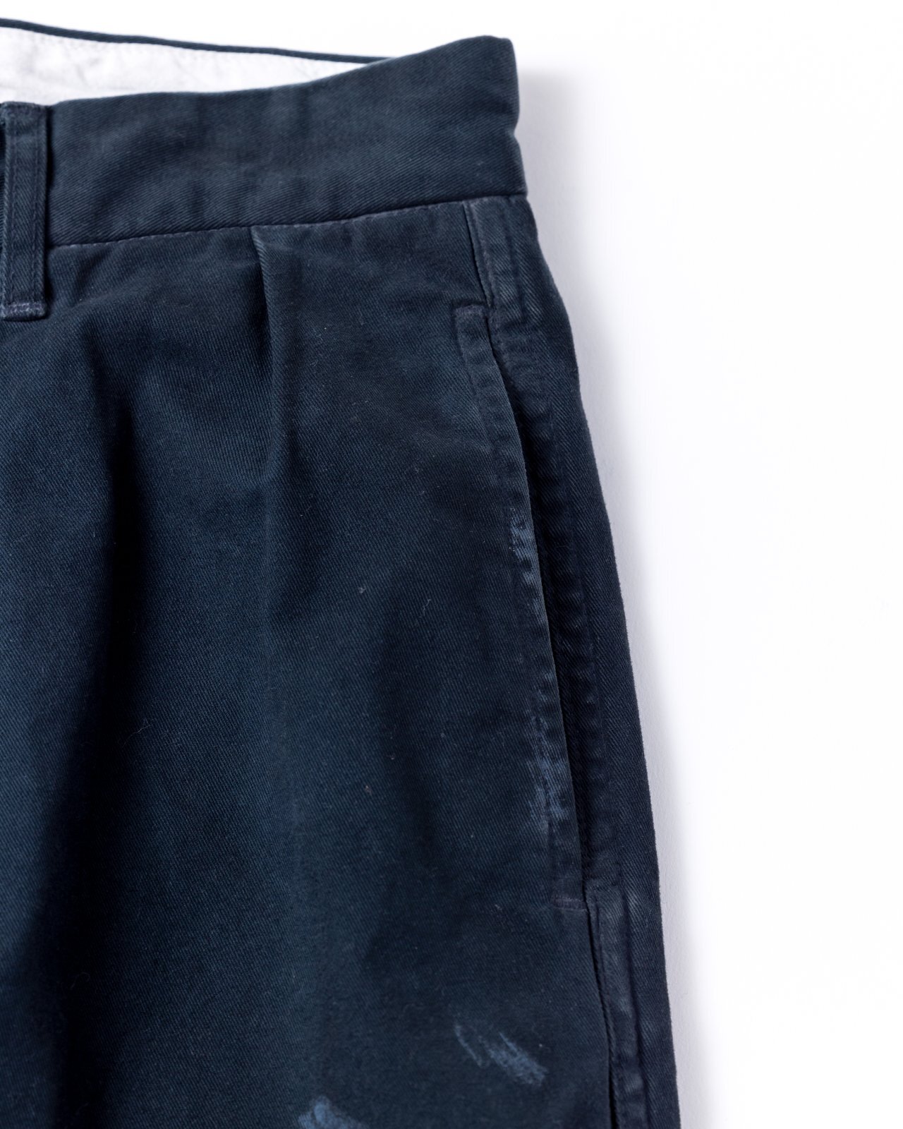 Crafted from a slightly heavy chino cloth. It is characterized by its durability and the soft texture inherent to its twill weave.