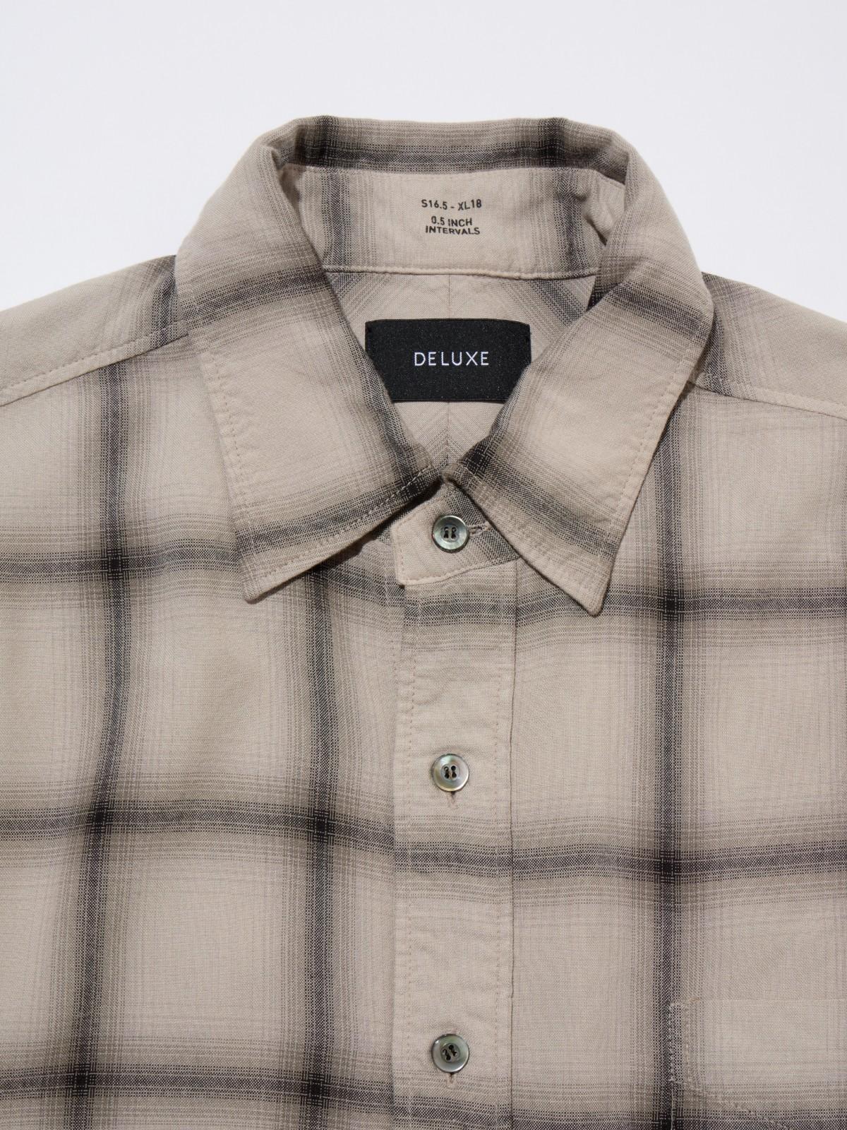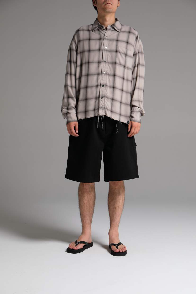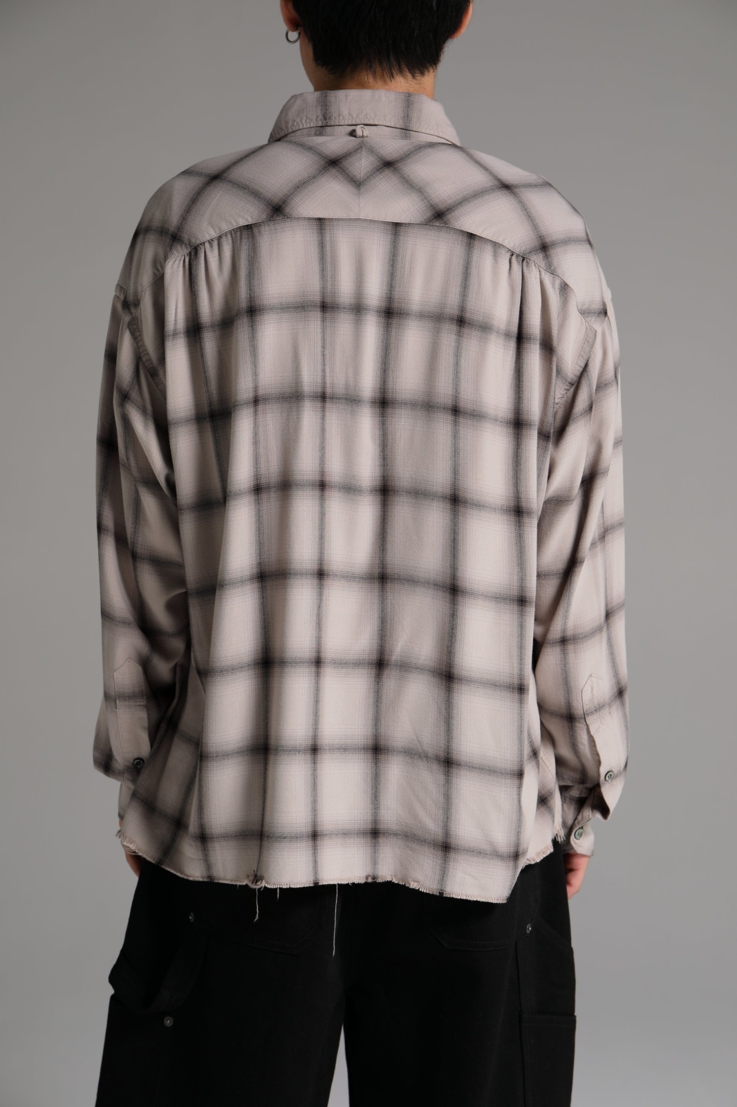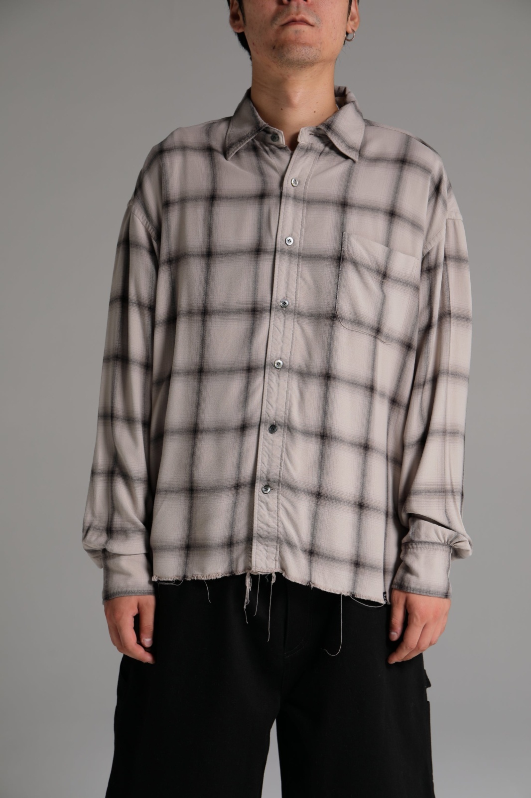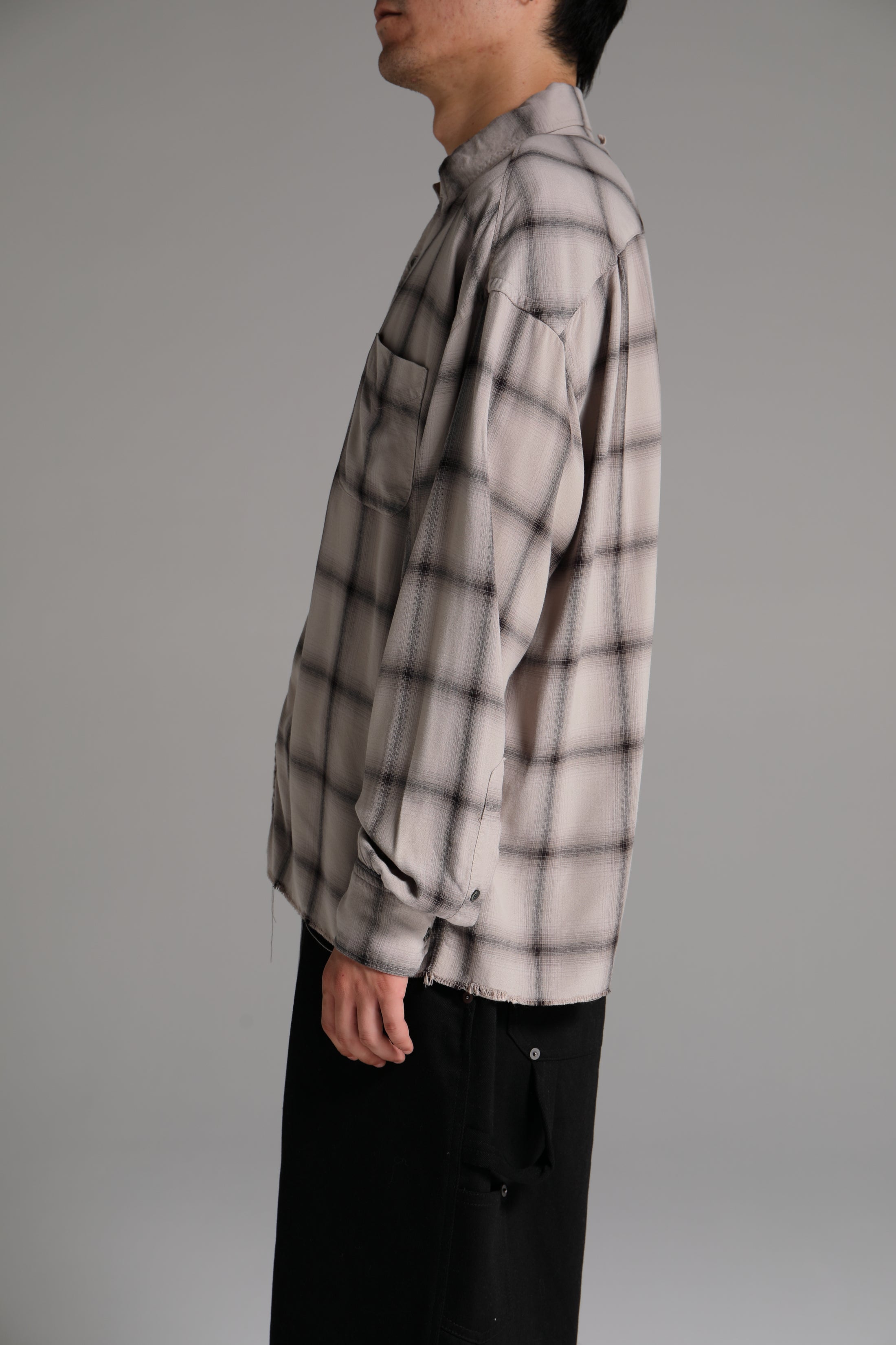 落ち感のある微光沢のレーヨン素材を使用したチェック柄シャツ。