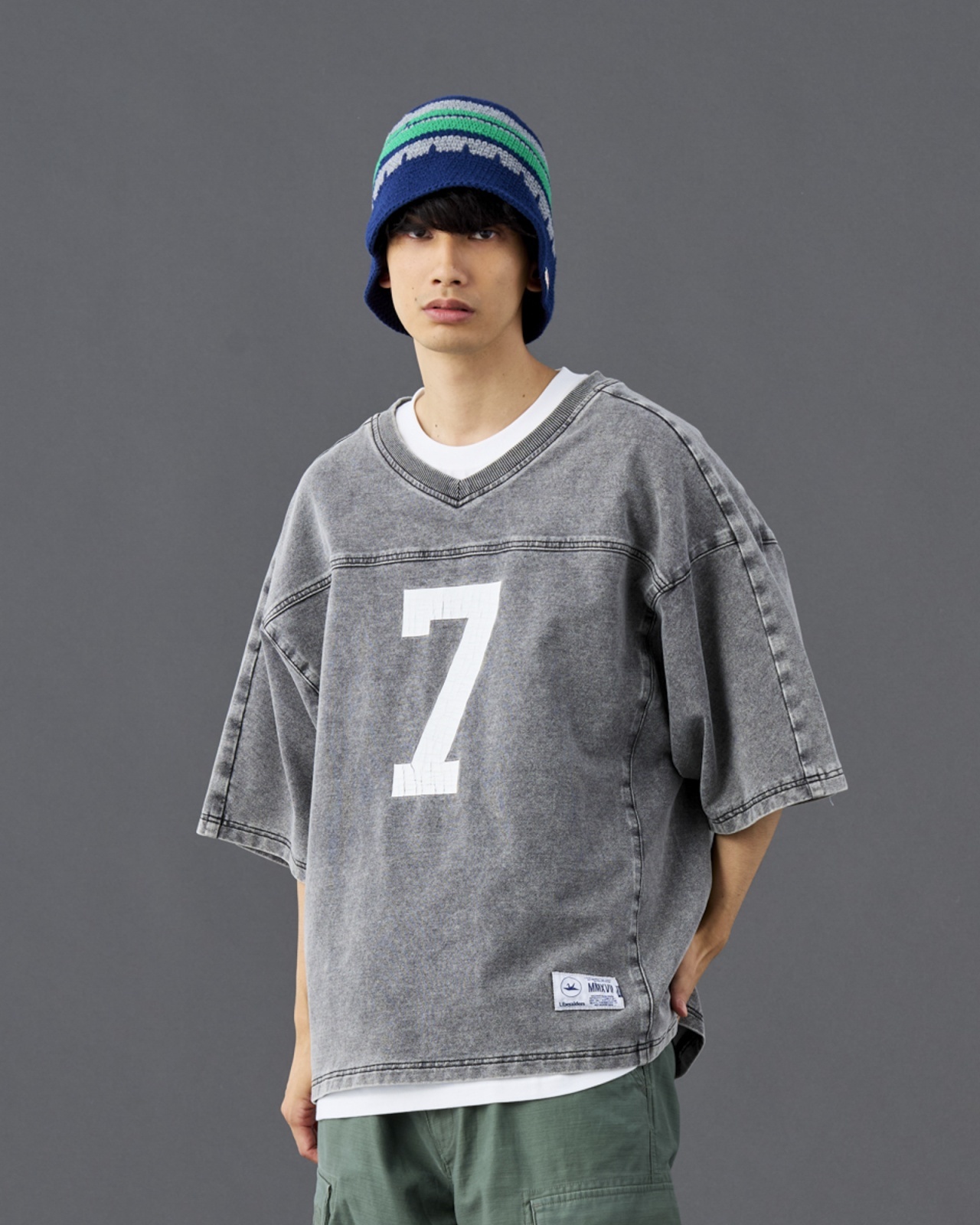 デニム染料のミニ裏毛を使用したホッケーT シャツ。