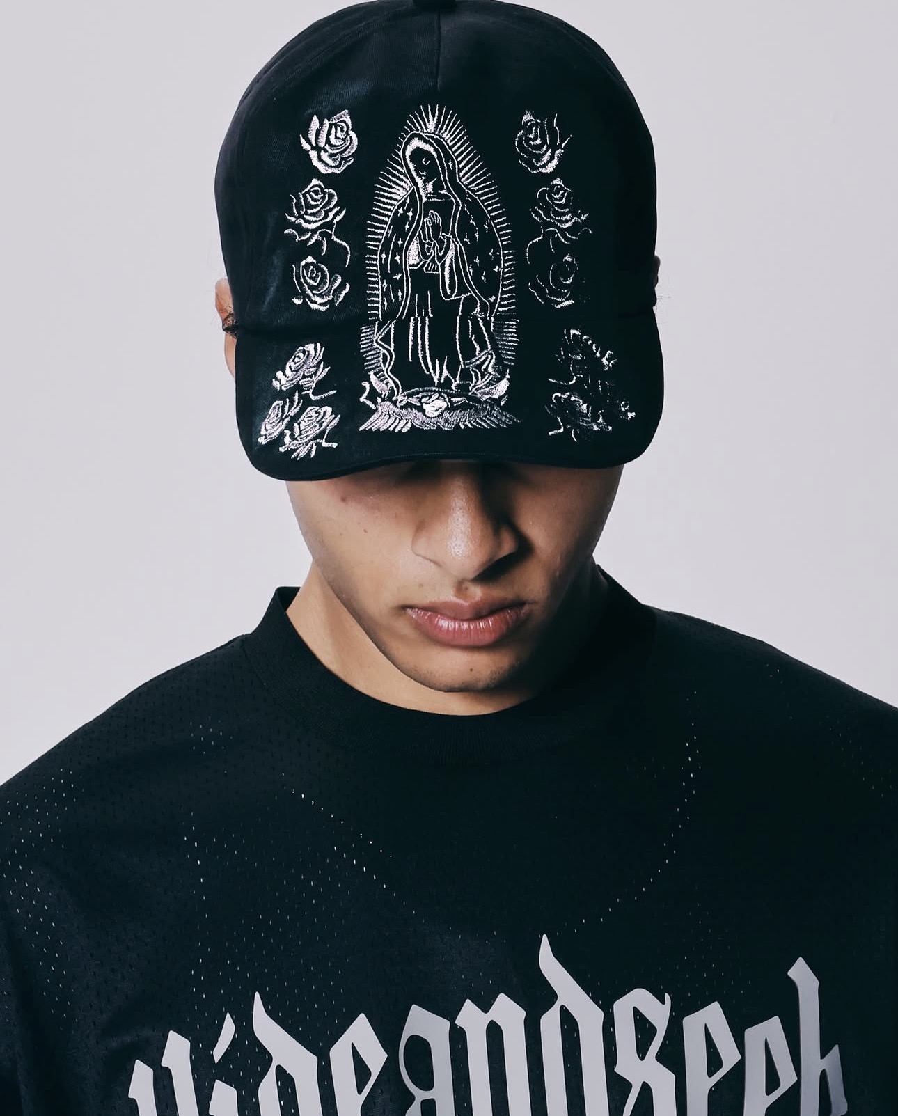オリジナルボディ、マリアの刺繍が入るキャップです。