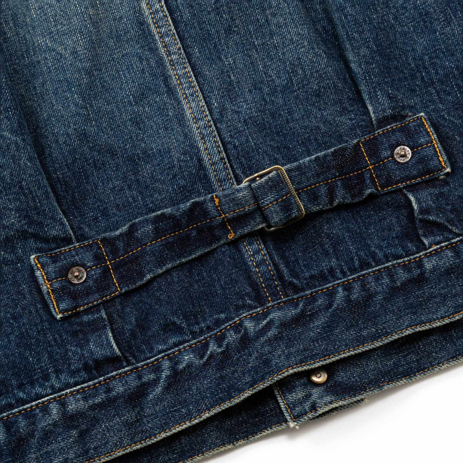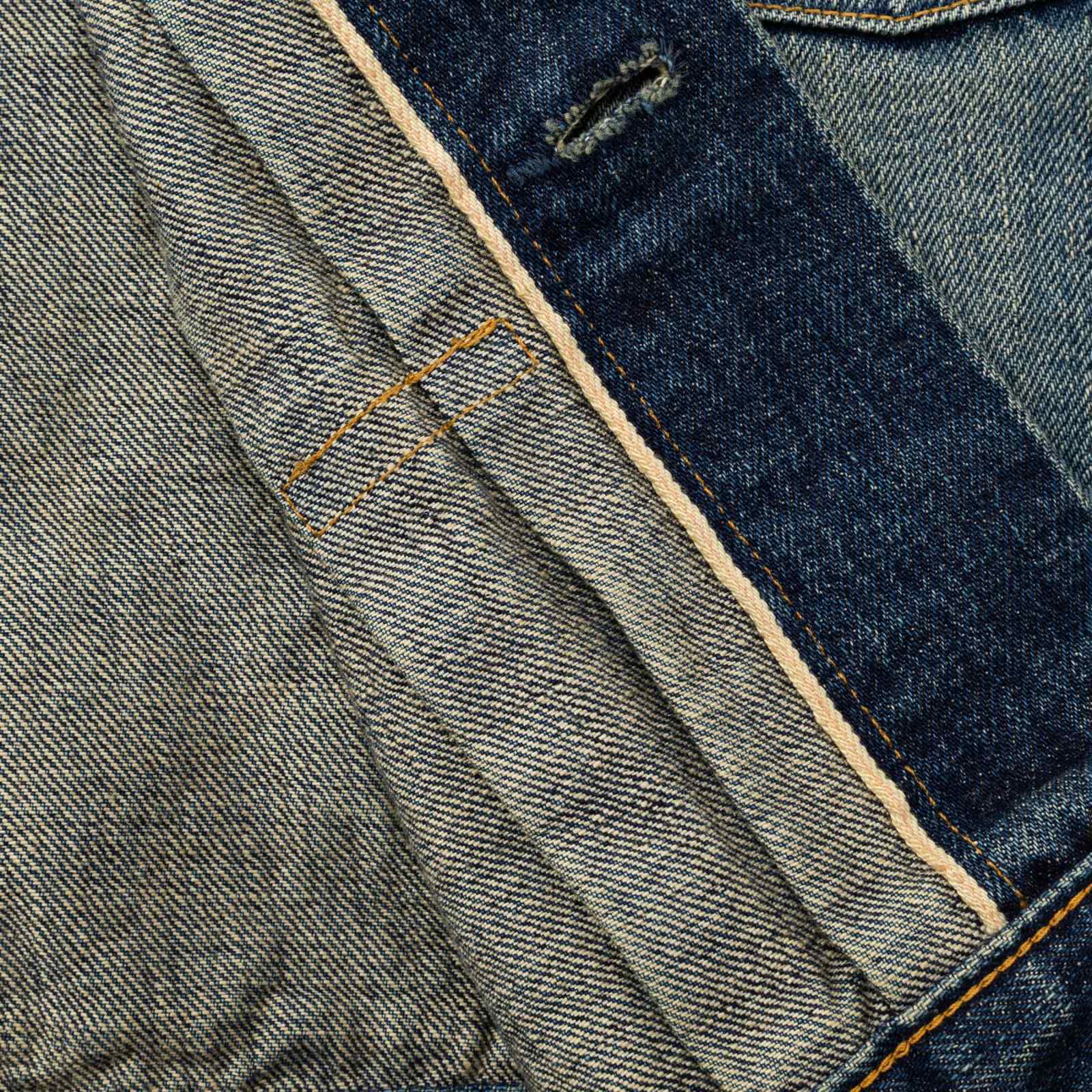 単一米綿を使用した、ピュアインディゴの14ozヴィンテージリプロデニム生地を採用。