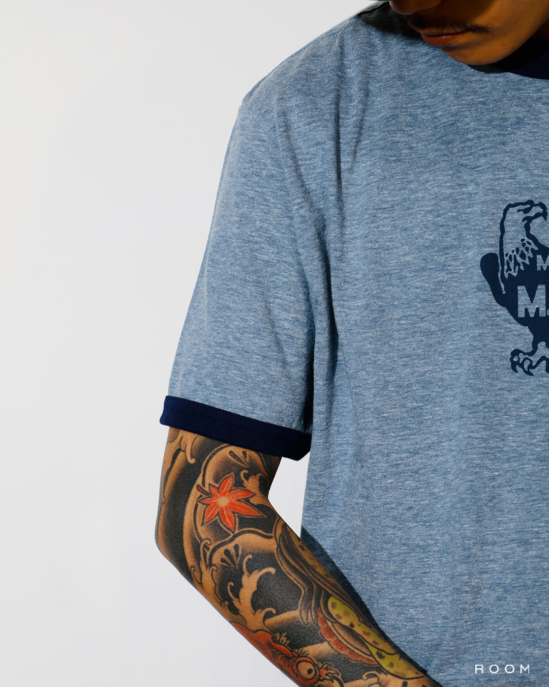 5.3オンスのコットン天竺素材を使用したトリム仕様のS/S TEE。フロントはオリジナルグラフィックを染み込みプリントで表現したデザイン。