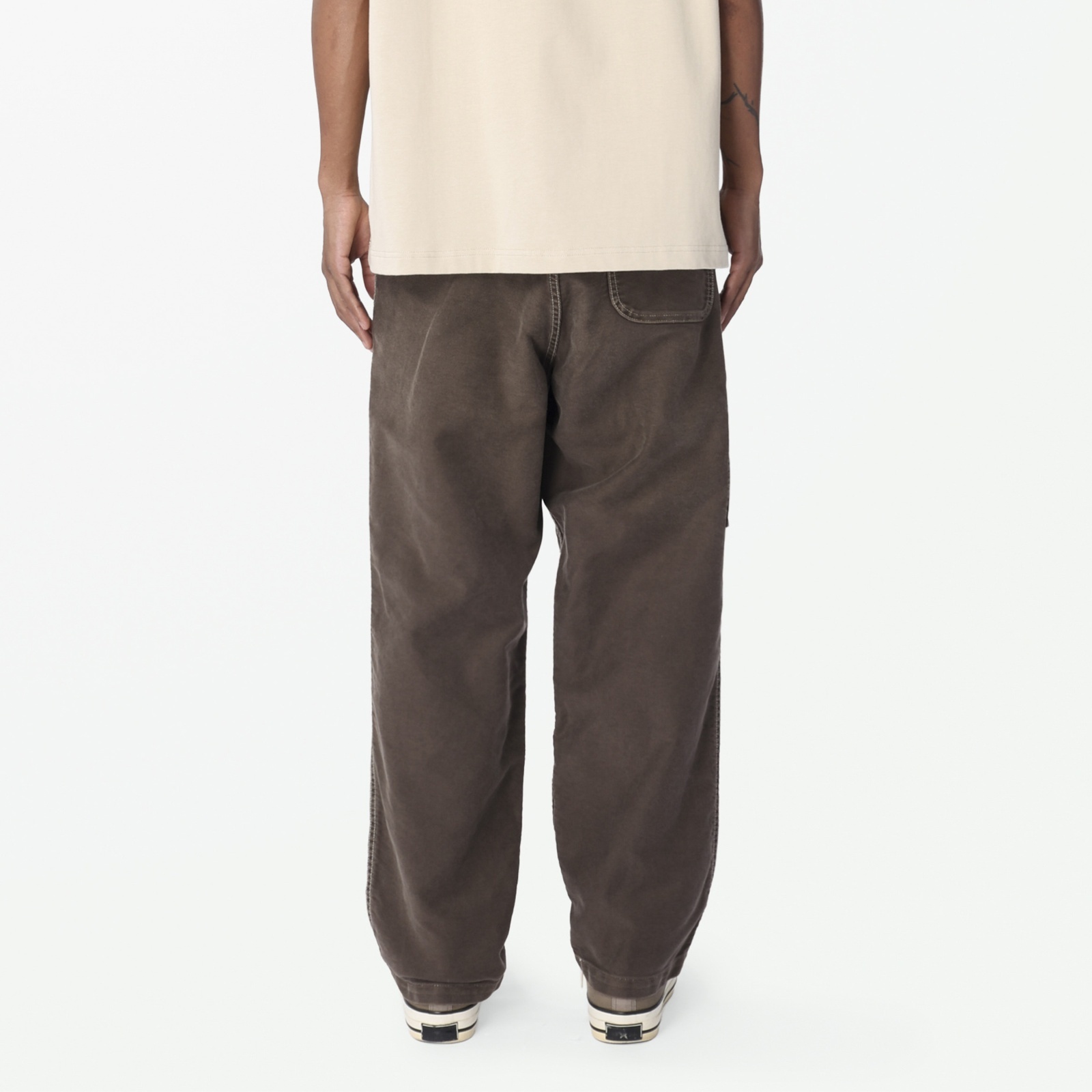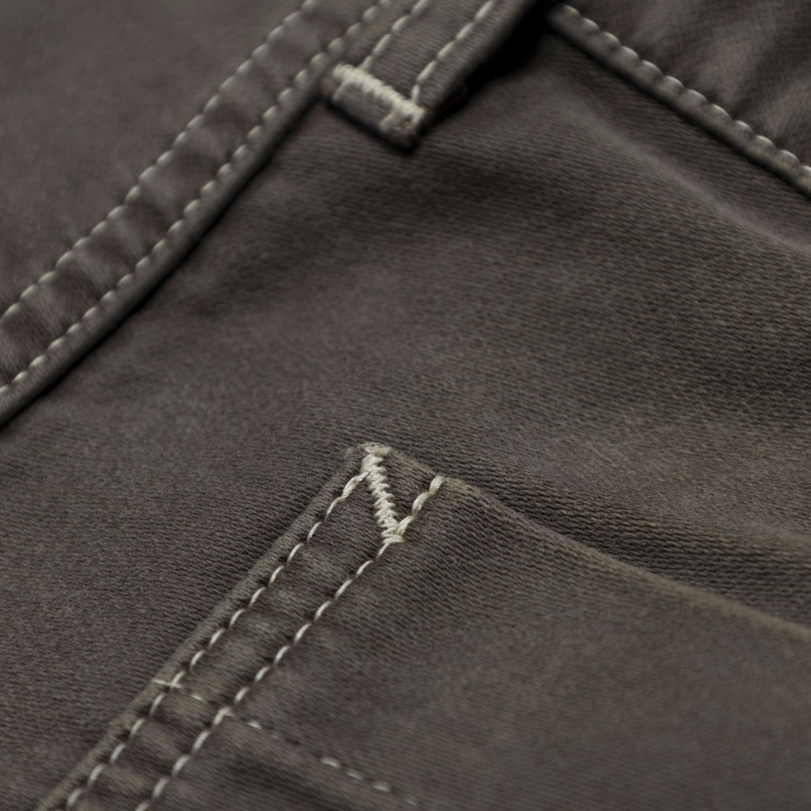 フロントに1タック、両脇にスラッシュポケット、背面右にパッチポケット、右脇にツールポケットを配置。