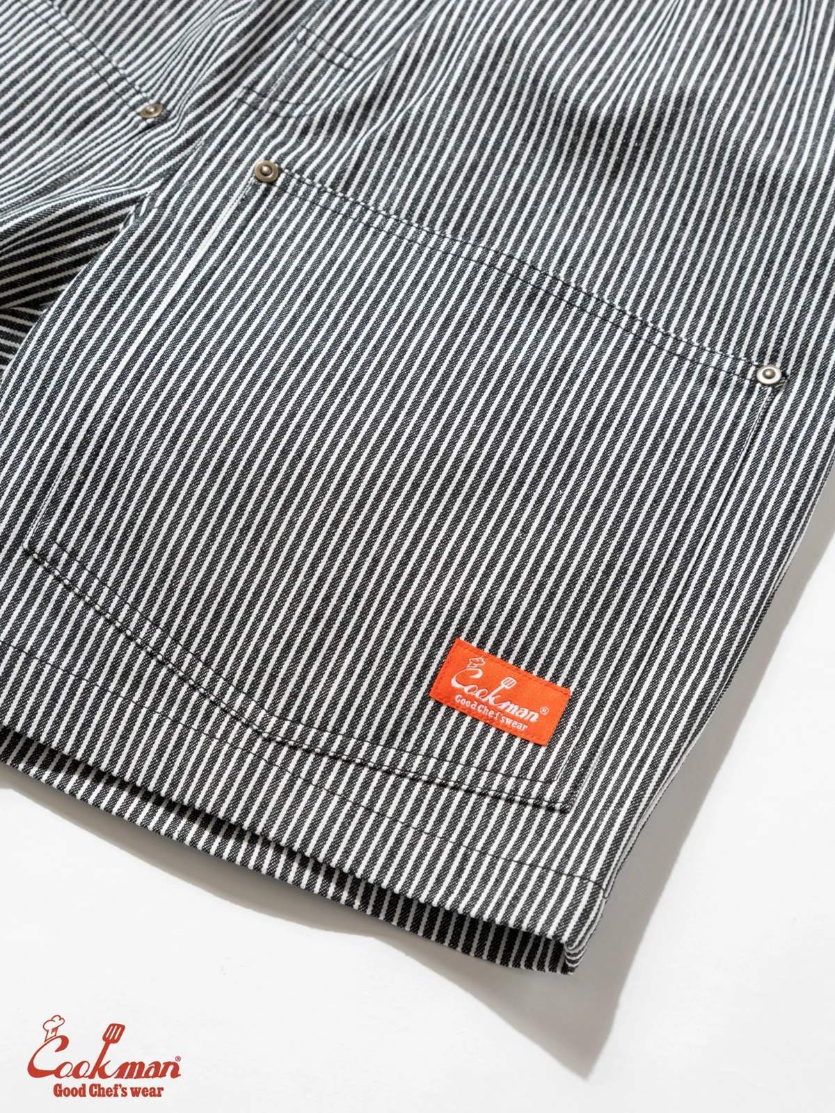 COOKMAN シェフパンツ Chef Pants Short Front Pocket Hickory Black [231-62922]