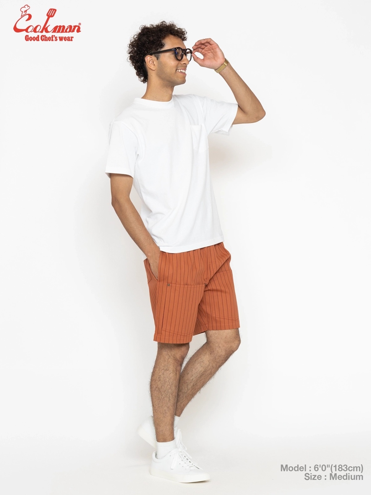COOKMAN シェフパンツ Chef Pants Short Front PocketHerringbone Stripe Brick [231-62921]