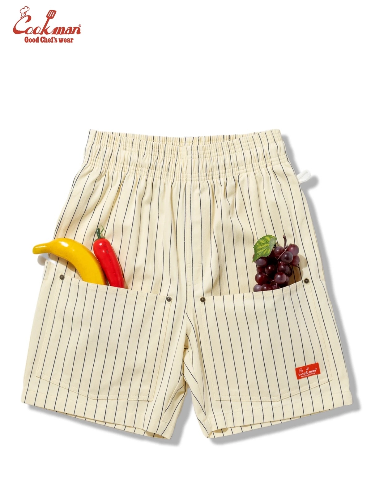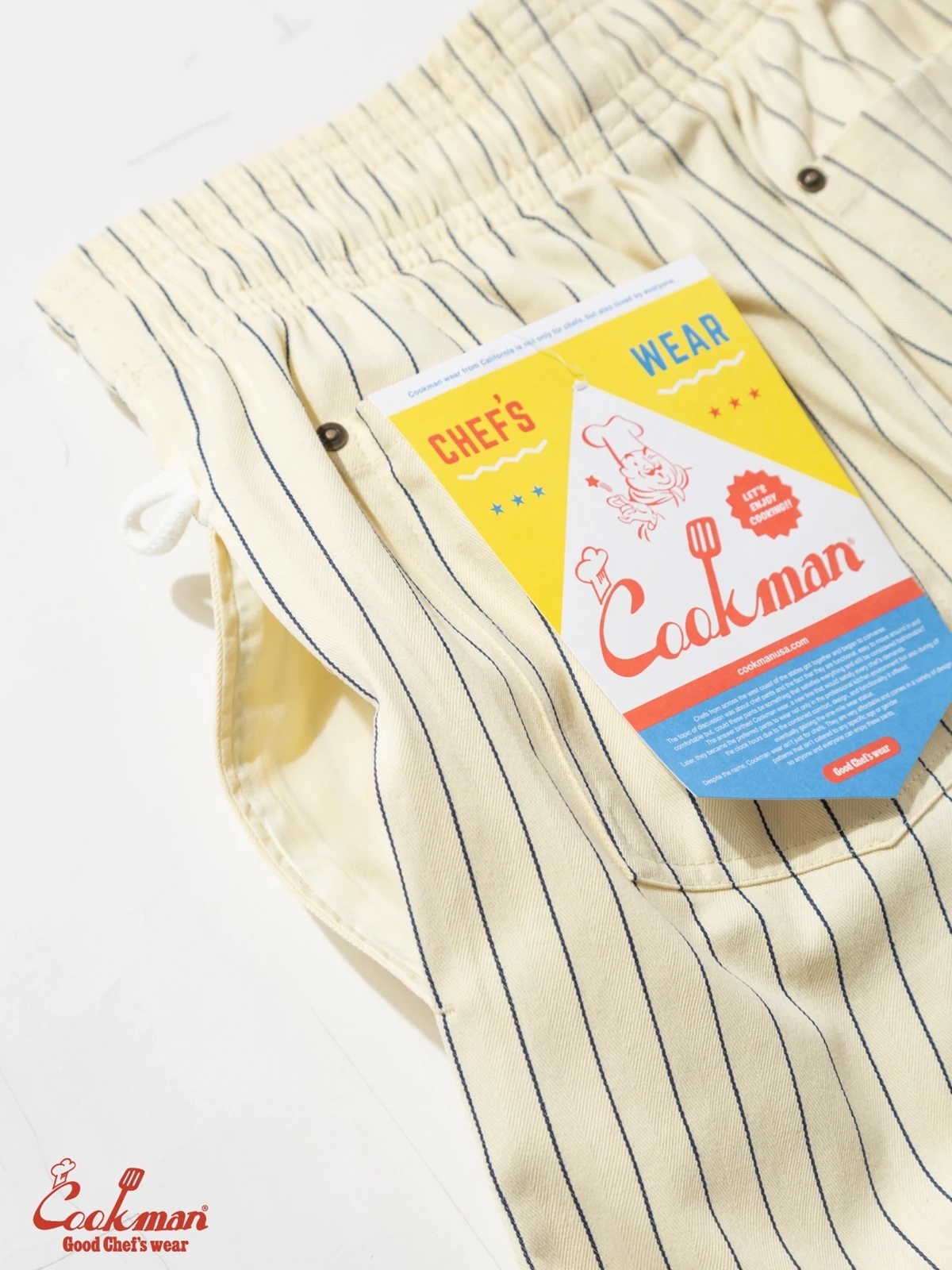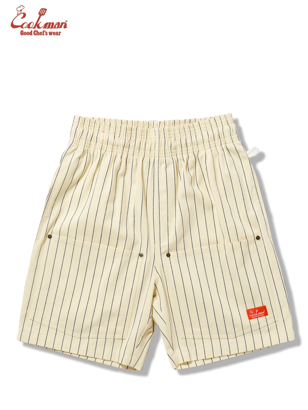 COOKMAN シェフパンツ Chef Pants Short Front PocketHerringbone Stripe Cream [231-62920]
