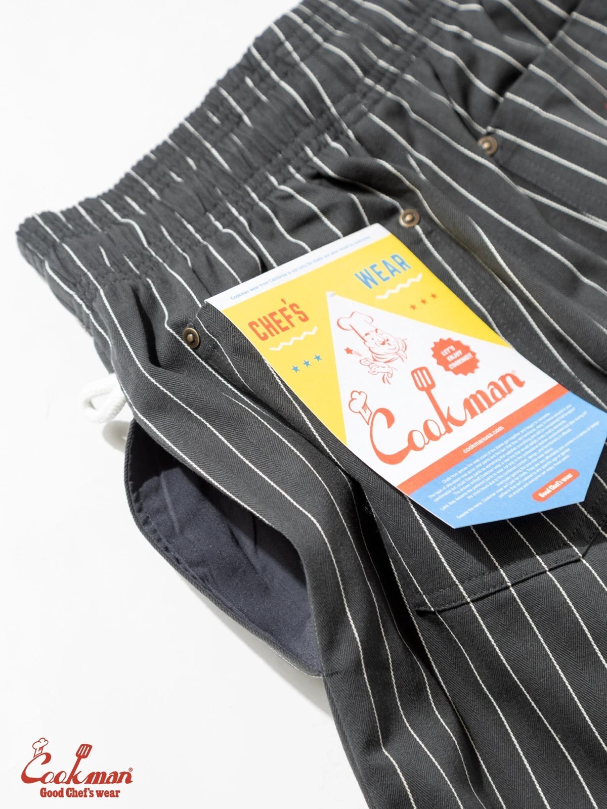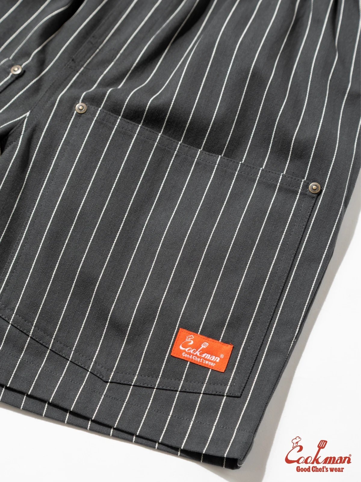 COOKMAN シェフパンツ Chef Pants Short Front Pocket Herringbone Stripe Charcoal [231-62919]