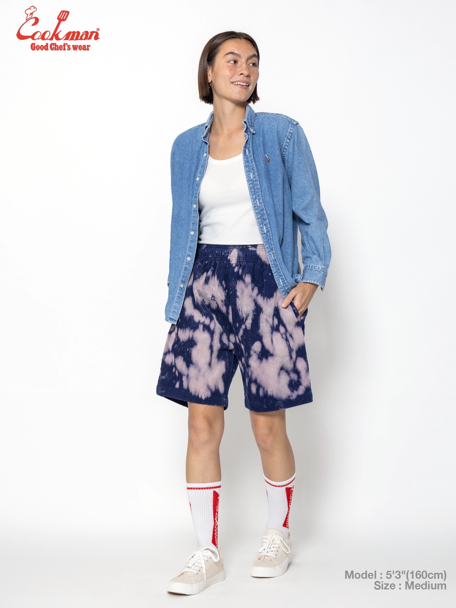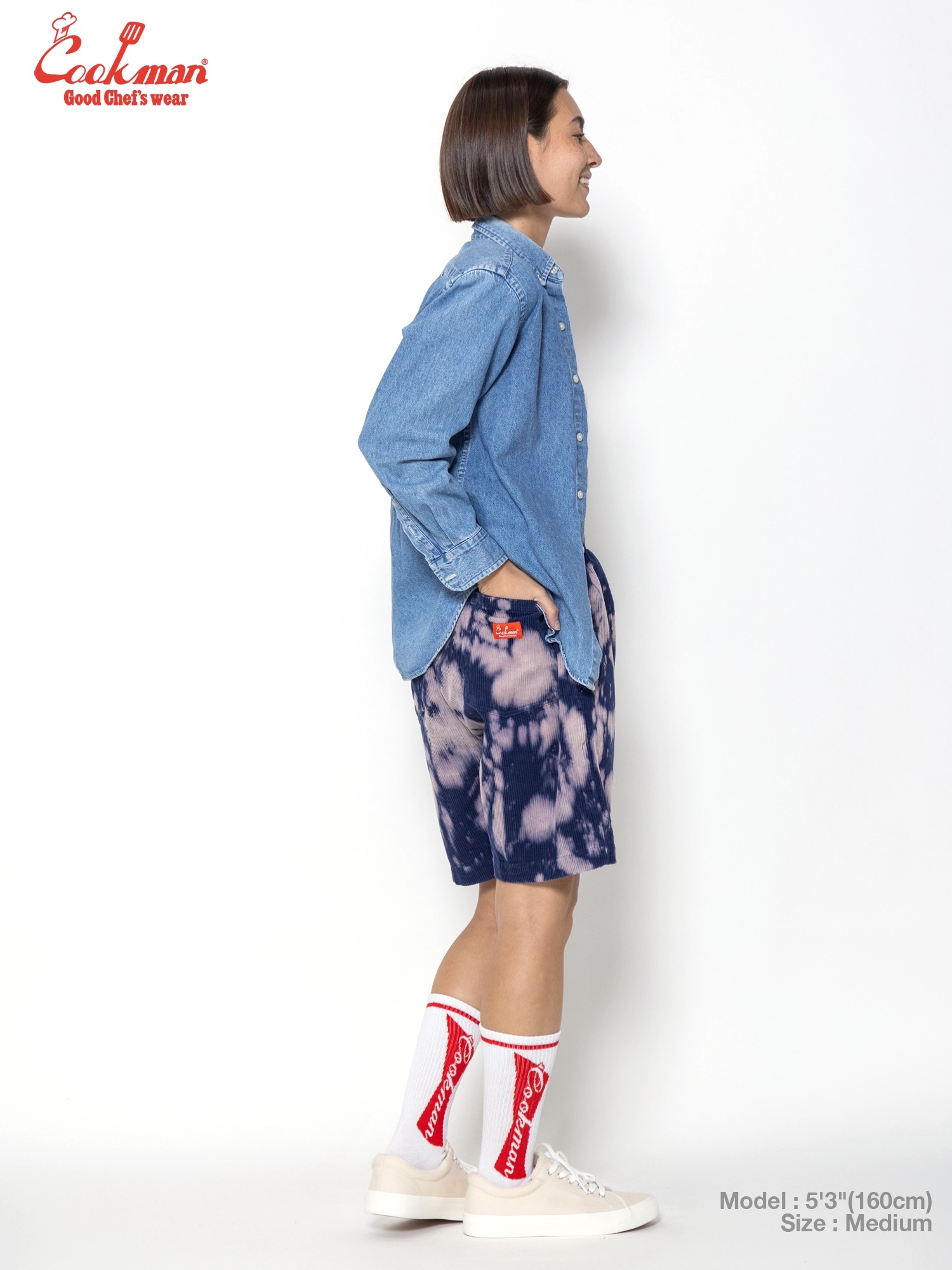 COOKMAN シェフパンツ Chef Pants Short Corduroy Bleach Navy [231-61926]