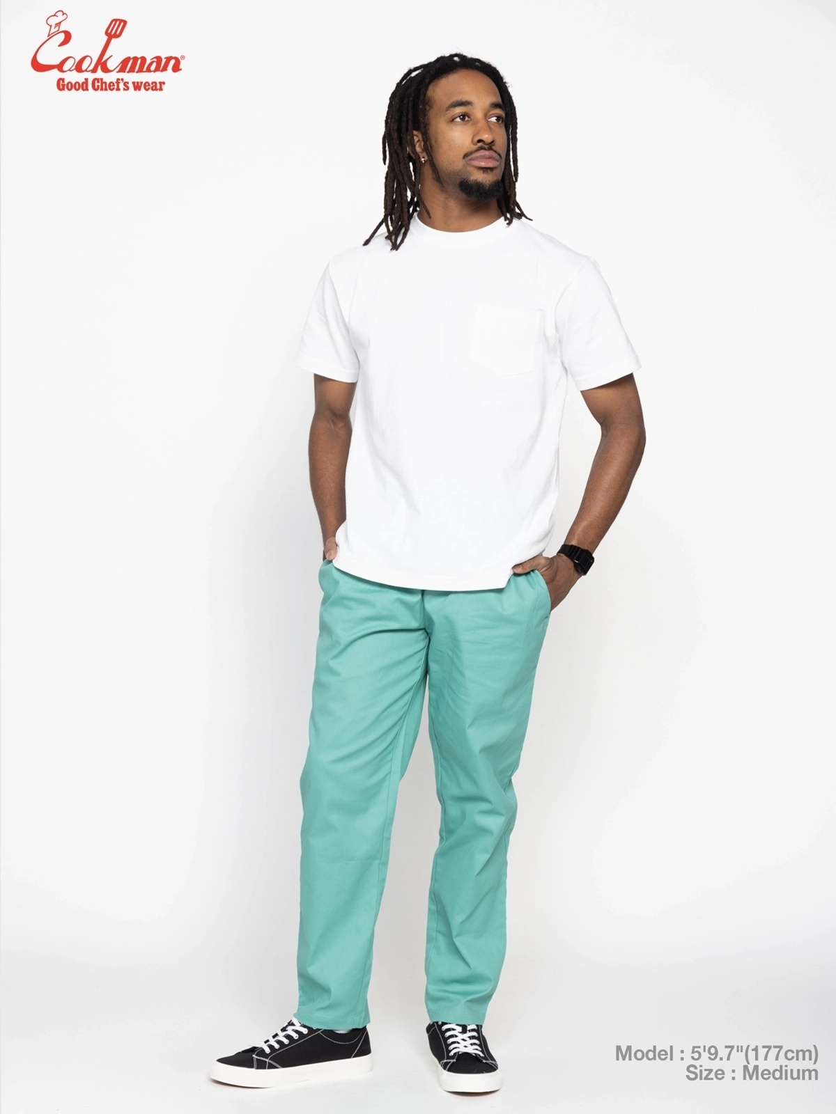 ブランドの自然志向を表現したさわやかなブルーのChef Pants。