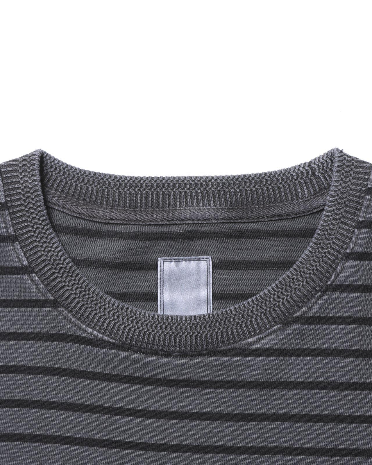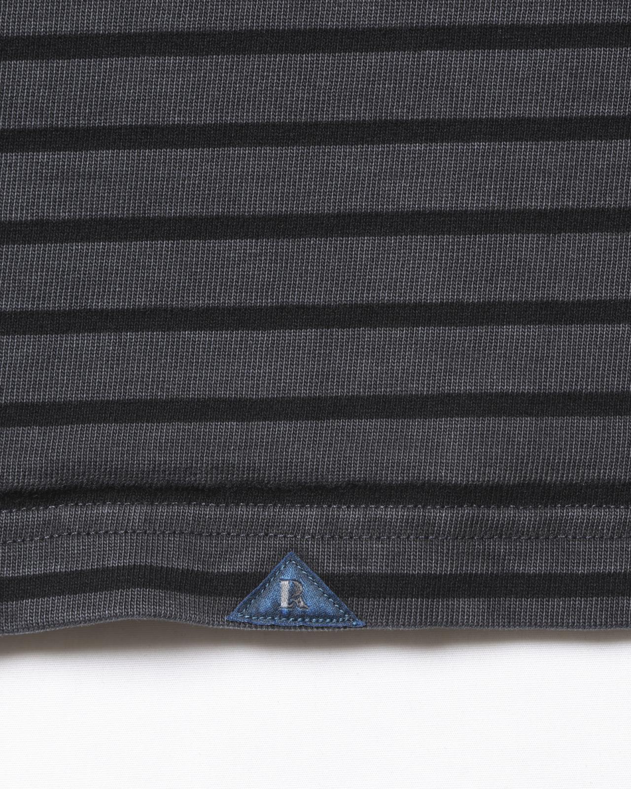 地厚な細ピッチボーダー生地の半袖 T シャツ。