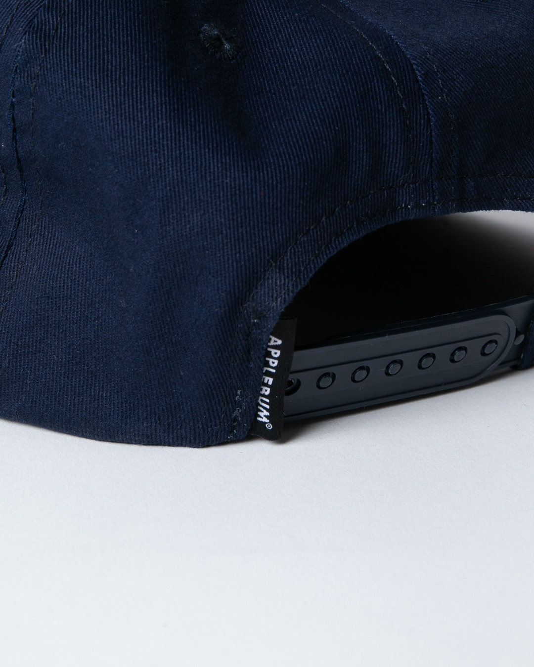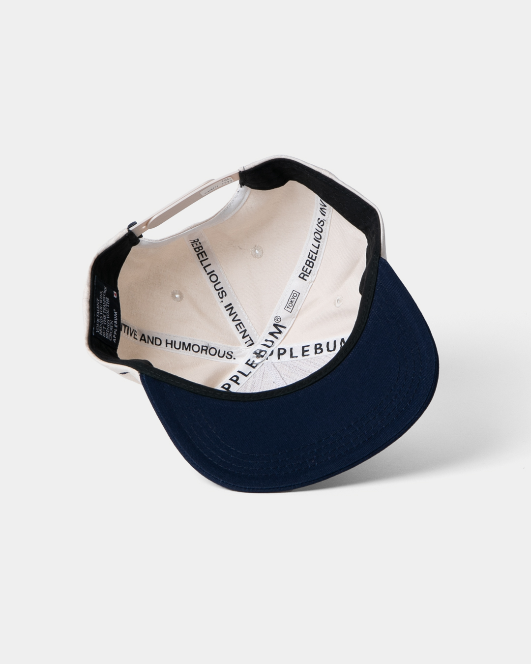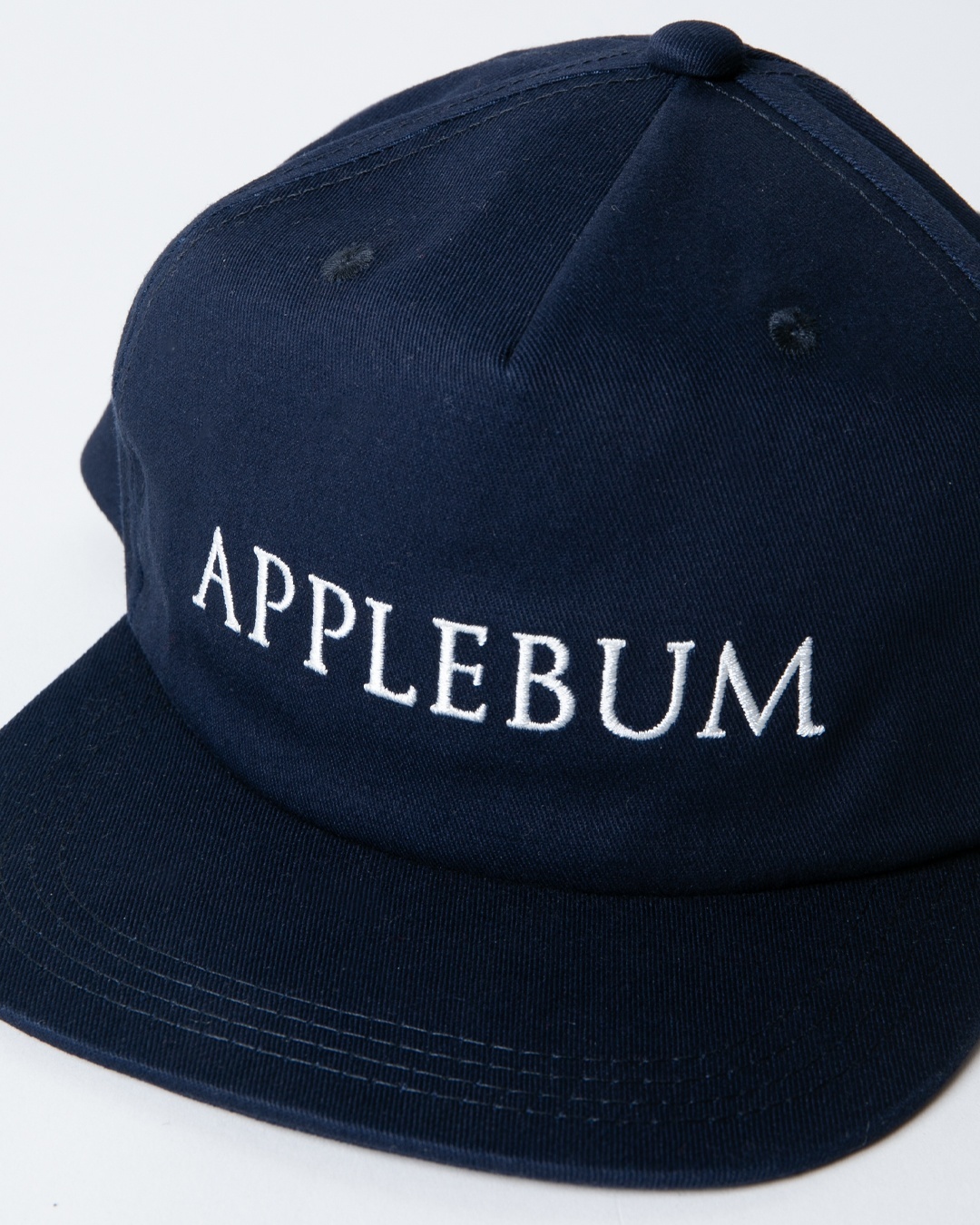 フロントにAPPLEBUMロゴを刺繍し、サイドにはブランドフィロソフィーを控えめに刻んだデザイン。