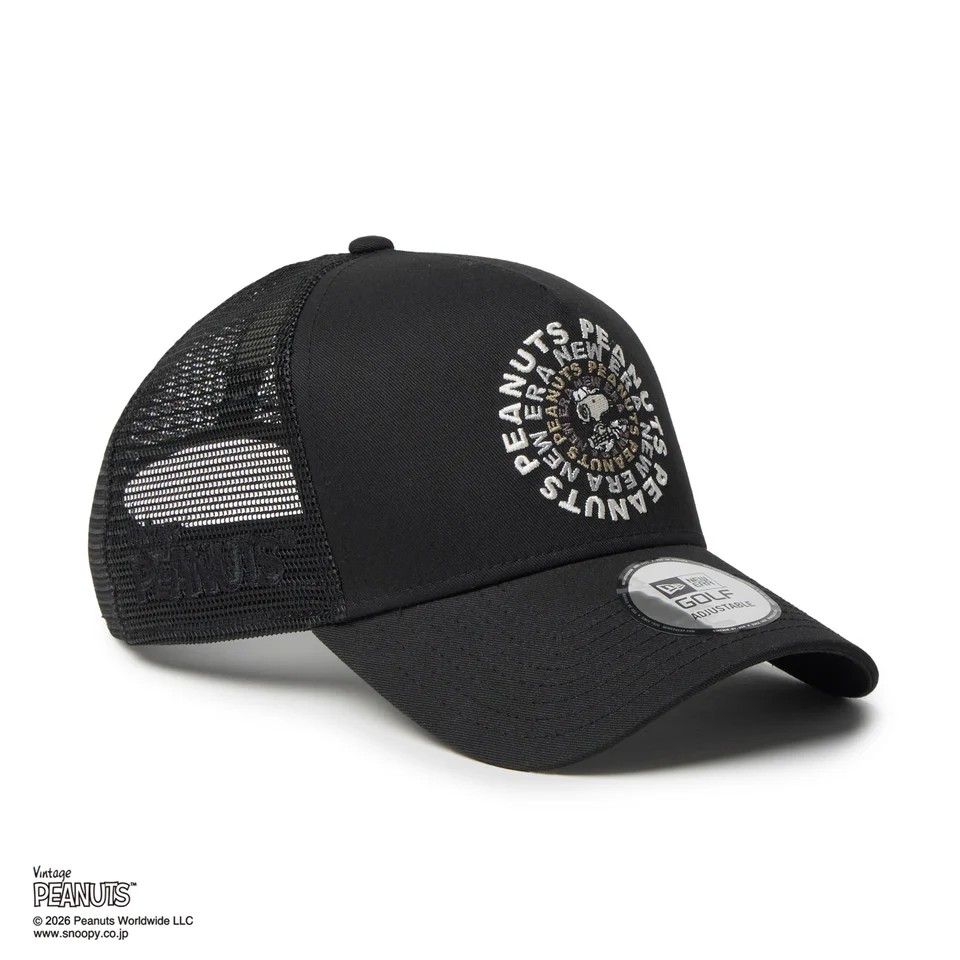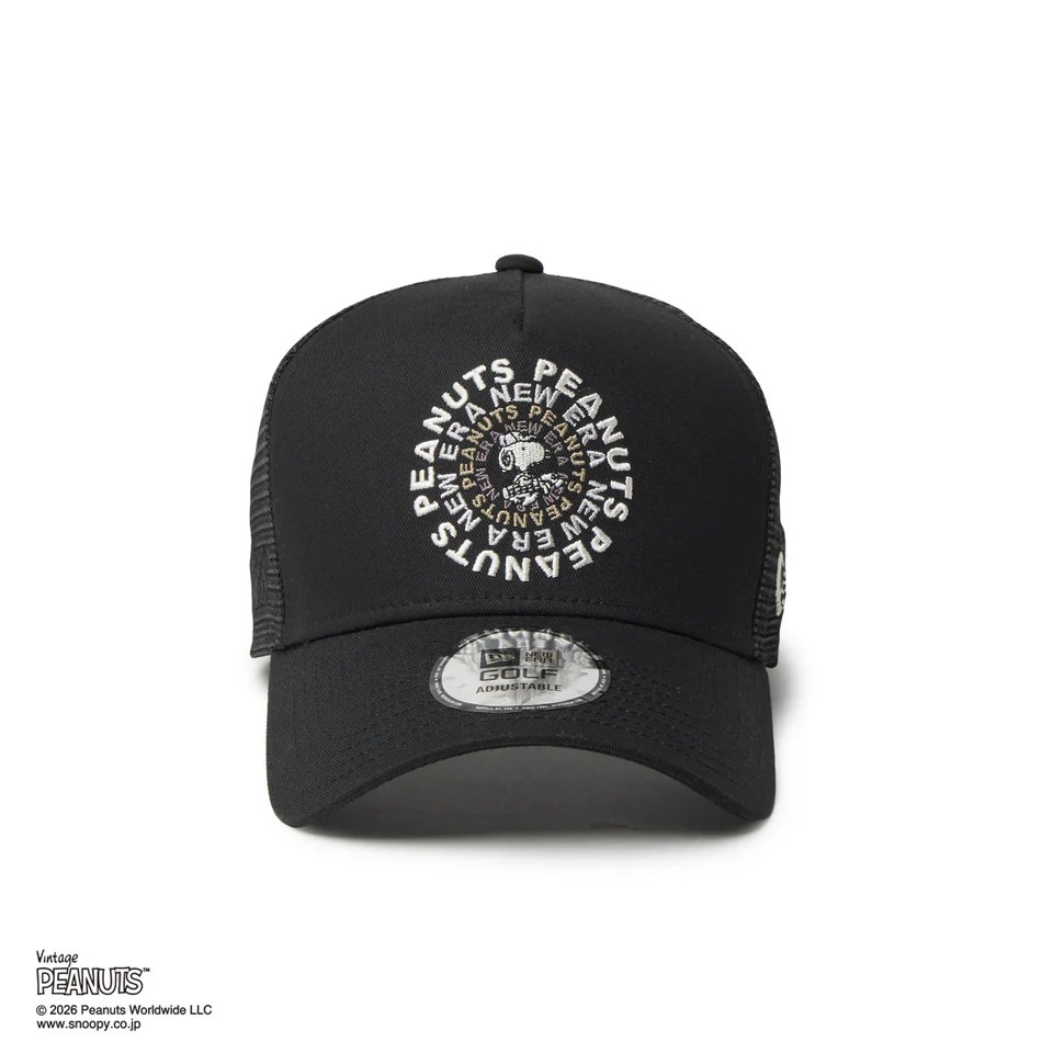 NEW ERA 9FORTY A-Frame トラッカー Vintage PEANUTS ピーナッツ GOLF Circle ロゴ ブラック | ゴルフ [14865323]