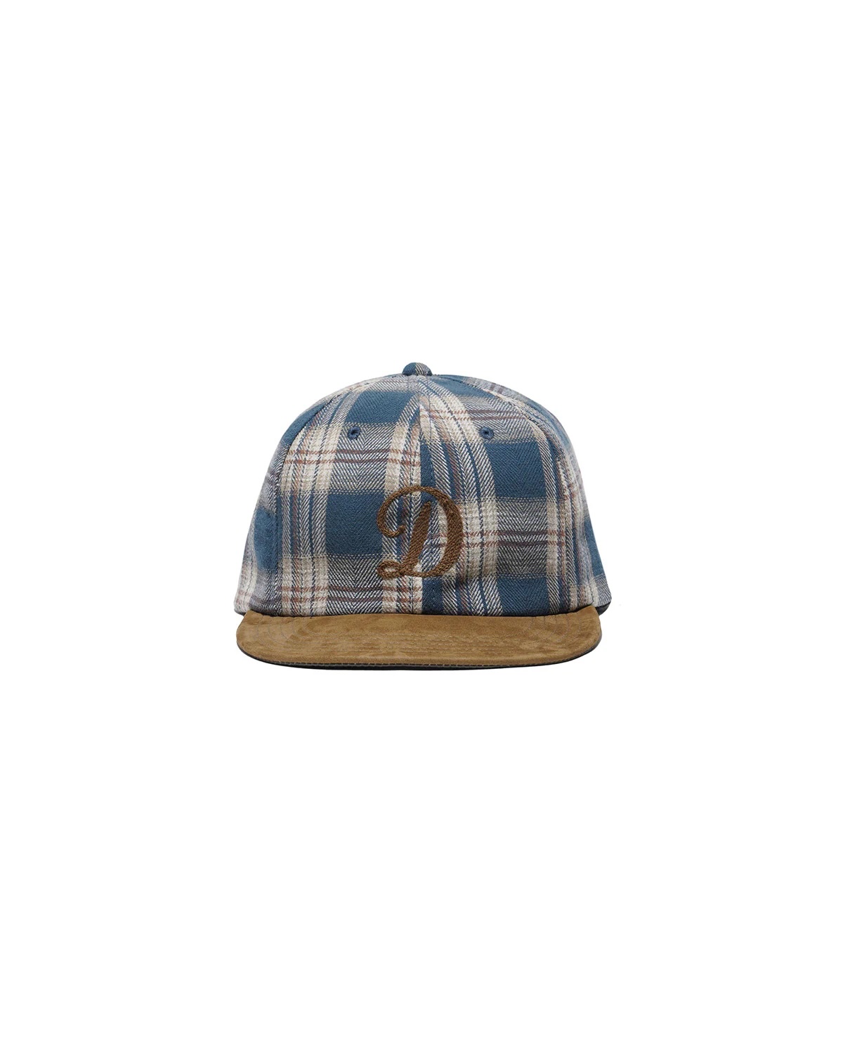 ヘリンボーンチェック柄のコットンネルクロスと、牛革ヌバックを組み合わせた、6パネルベースボールキャップ。