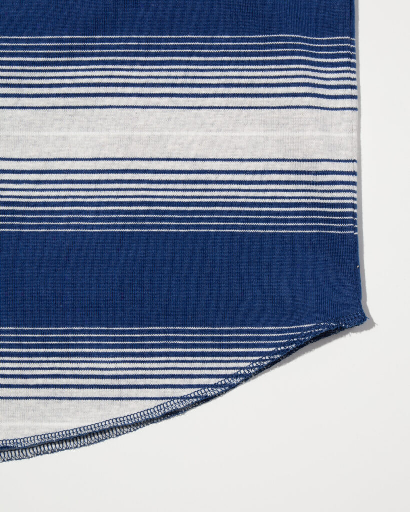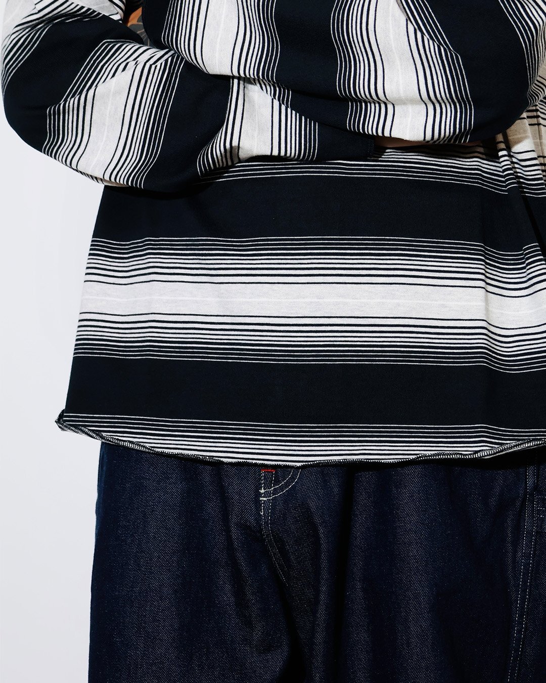 ビンテージラグをイメージソースにして杢糸で作ったピンストライプボーダーの天竺生地。