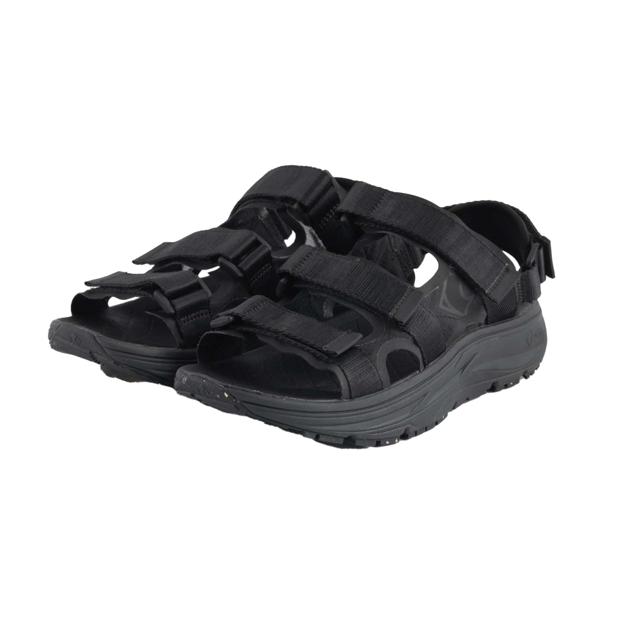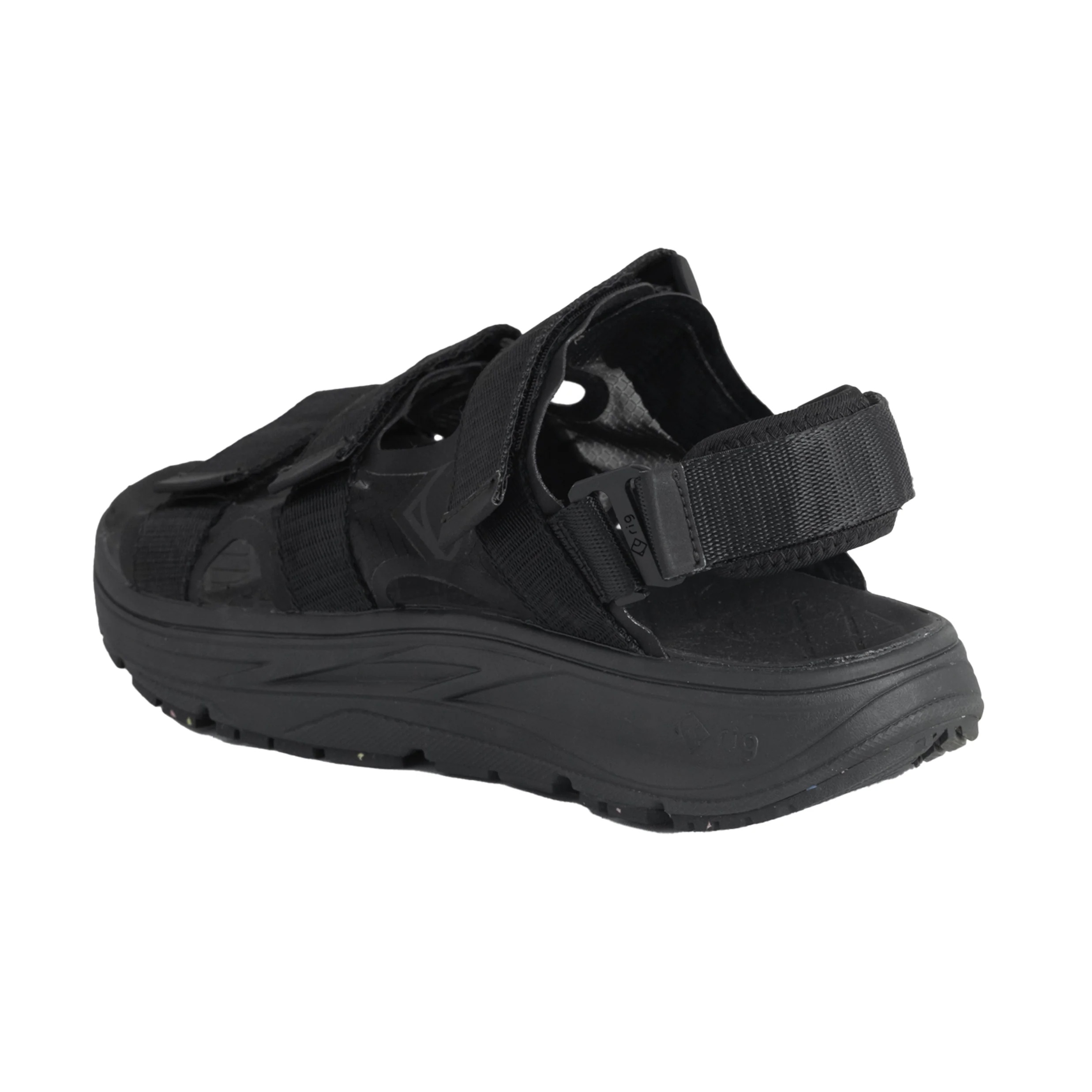 ヒール部分のバックストラップはべルクロで調整でき、取り外ししてスライドサンダルとしても使用可能です。