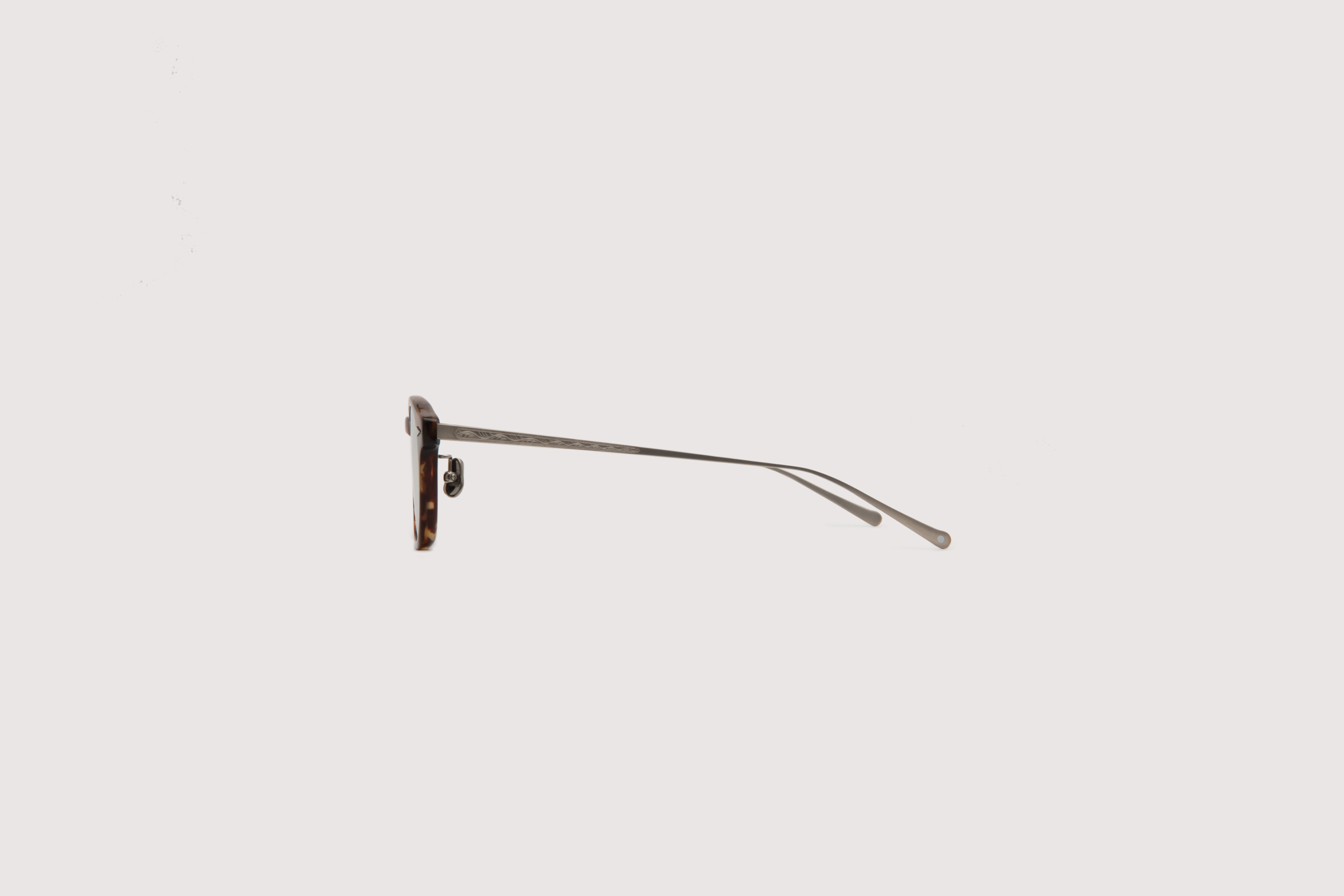 ミドルサイズのユニセックスエイジアンフィットボスリントンタイプでブランド名を冠したNOCHINO OPTICALのシグネチャーモデルNOCHINOをベースとして、数ミリの若干のサイズ調整を行い、美しい彫金が魅力のチタン製テンプルと、TUKIYOMIやKYOKUSUIでもお馴染みのアレルギーフリーのノーズパットを採用した言わばNOCHINOハイブリットコンビネーションバージョン。