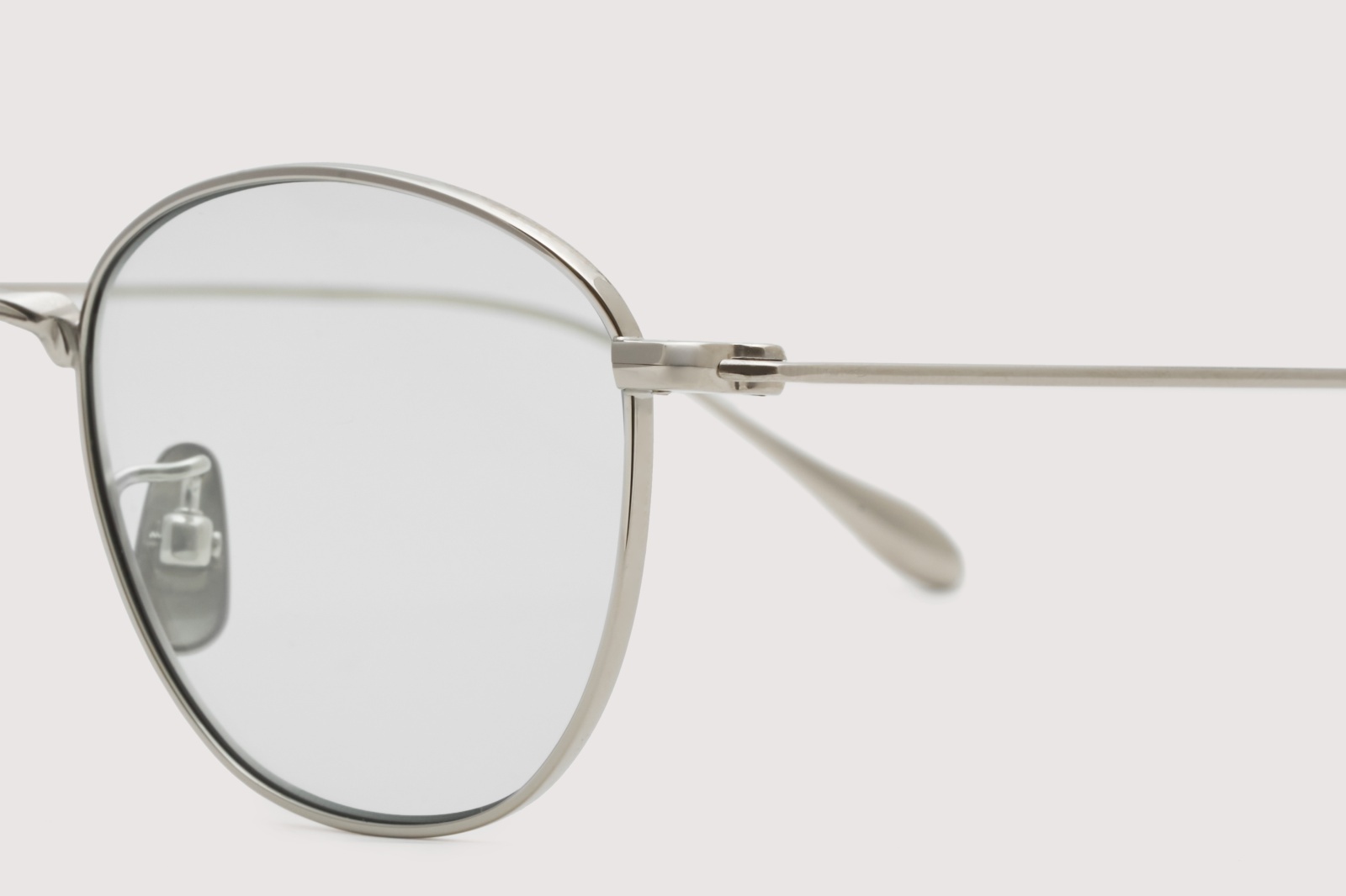特にフロントリムには、一般的な鯖江製眼鏡に使用される1.0mm厚ではなく、あえて0.9mm厚のチタンリムを使用。