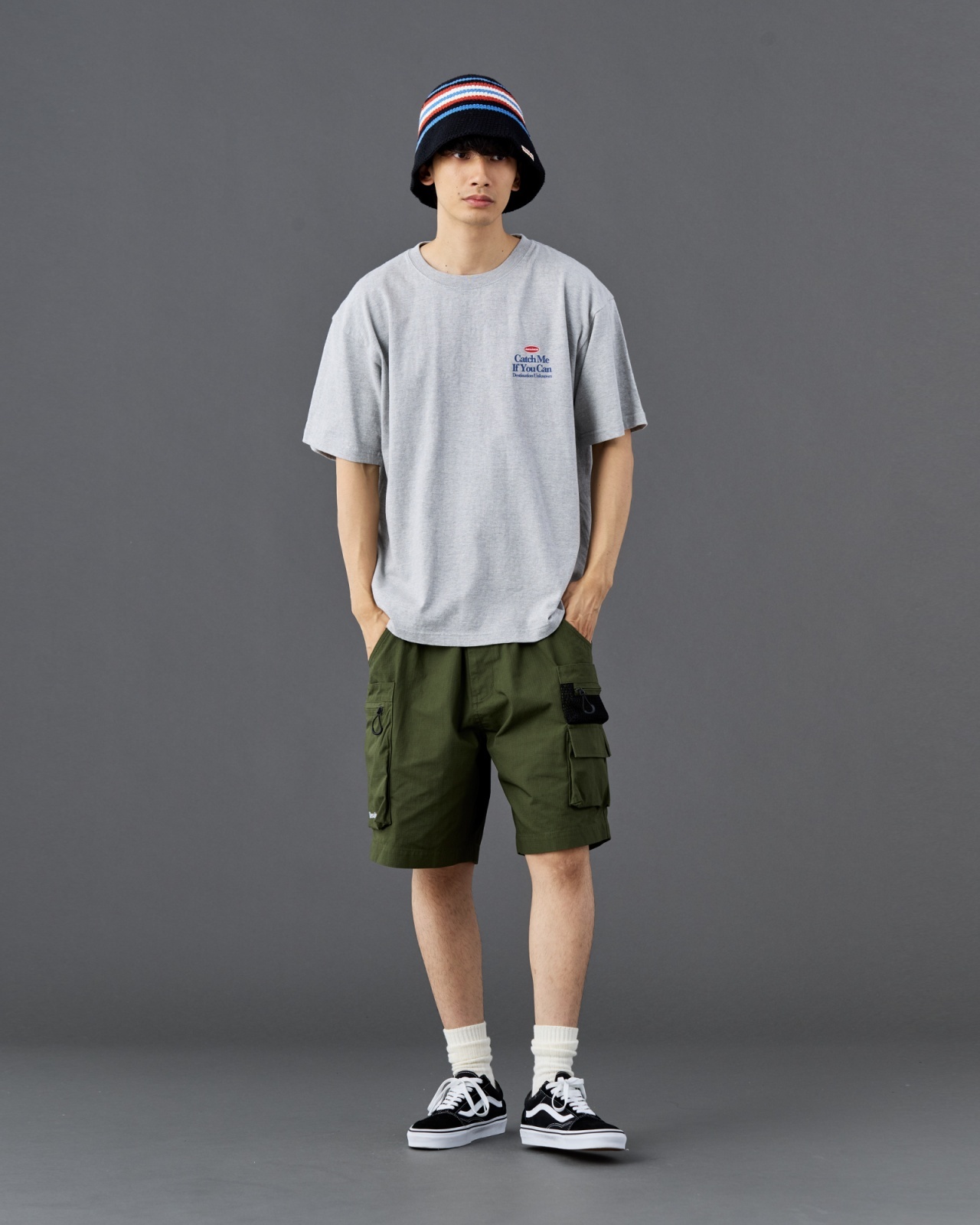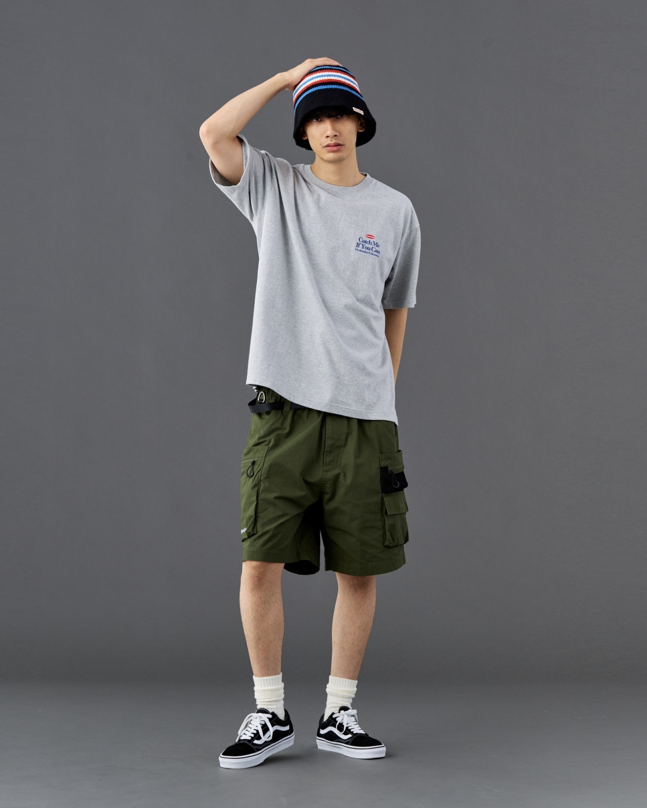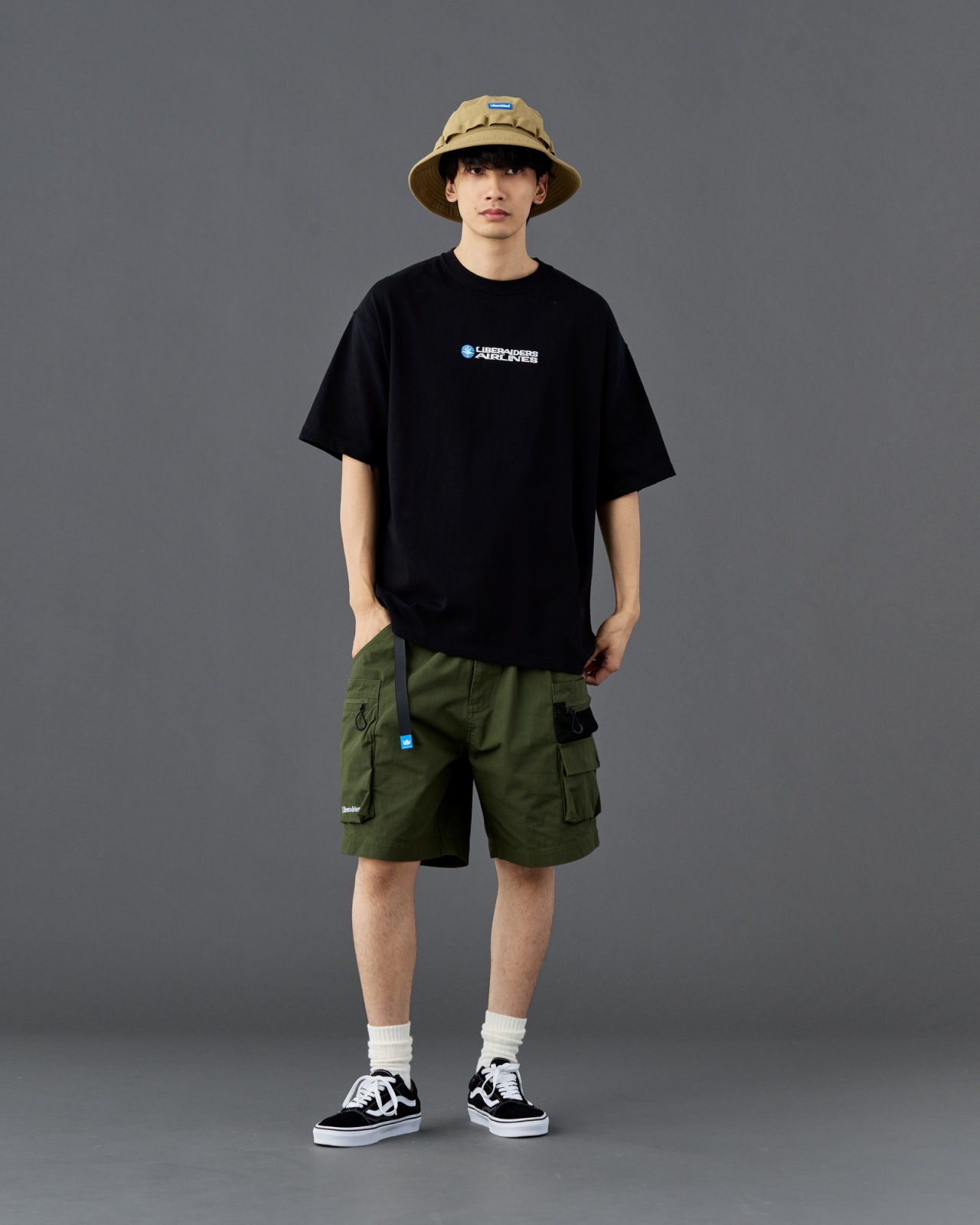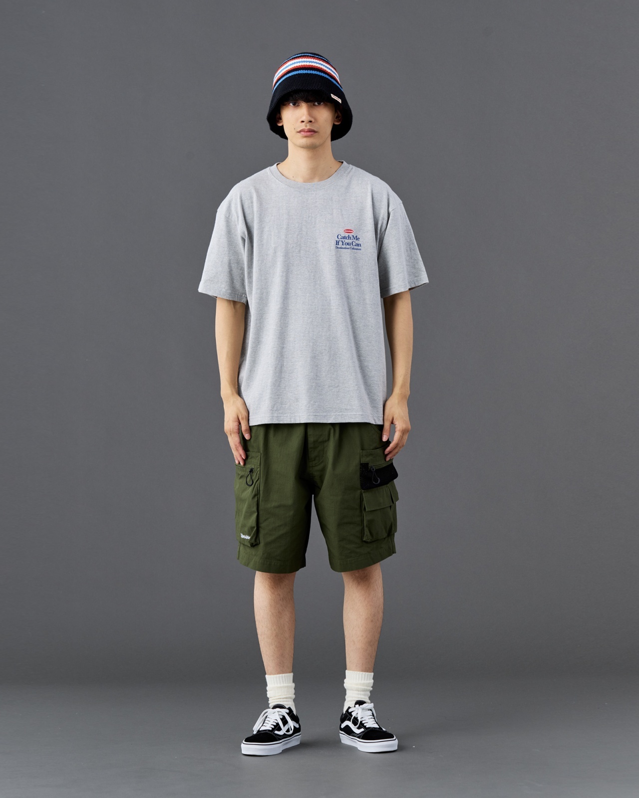 大小様々なポケットを配し、ポケット口にはキーホルダー等をひっかけられるオリジナル刻印のメタルパーツを配す等随所まで作り込まれた機能的なショーツです。