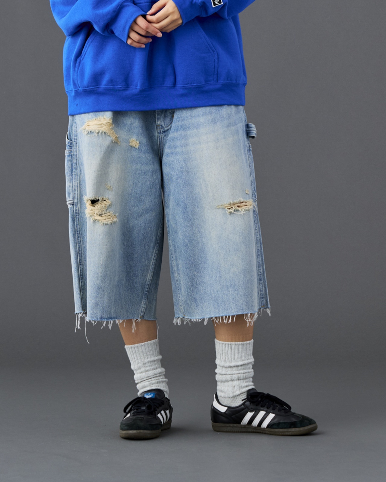 Liberaiders DAMAGED DENIM BUGGY SHORTS [738032601]