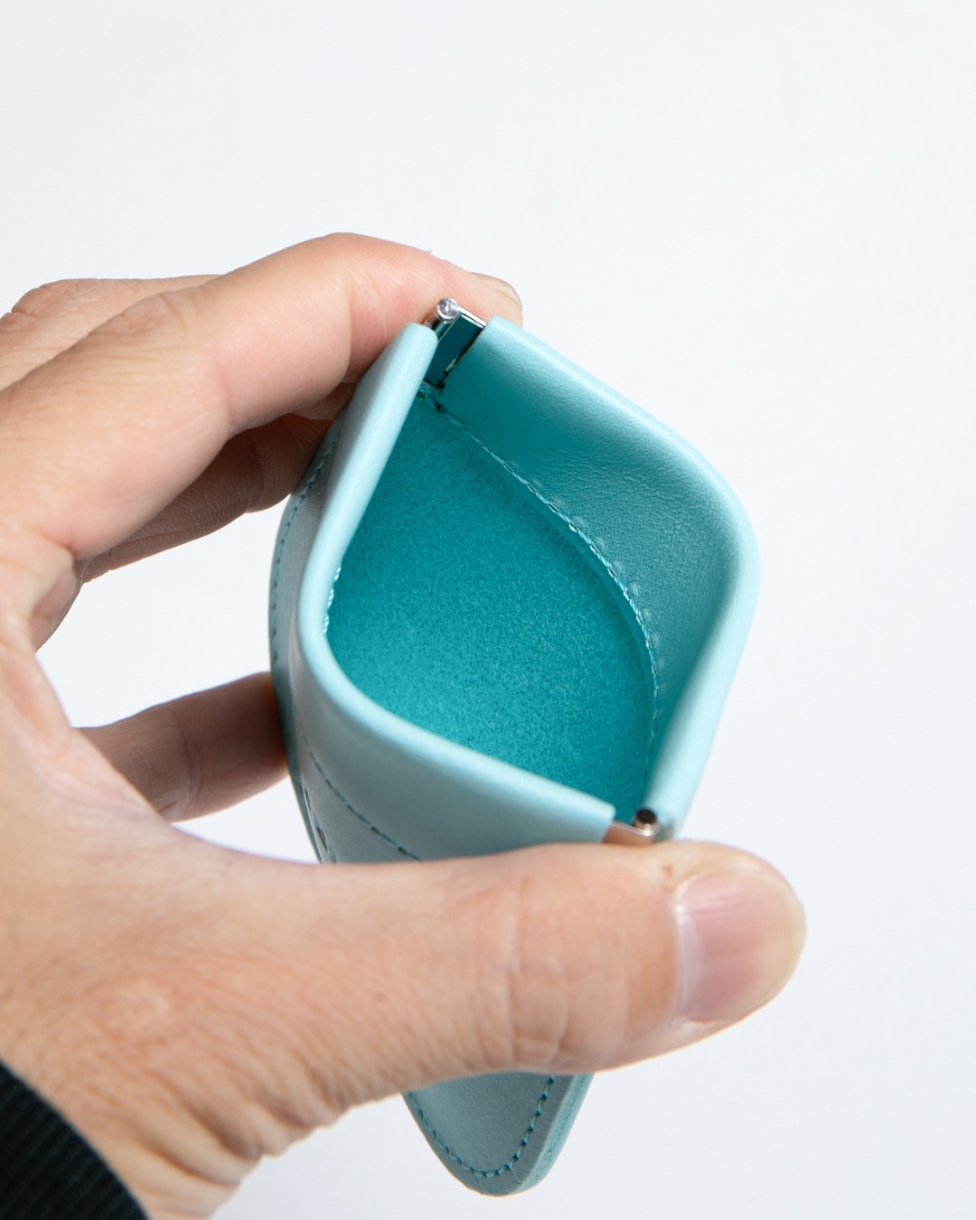 シンプルなフォルムながら、柔らかく開閉できるメタルフレームが実用性を高め、素早い出し入れをサポート。