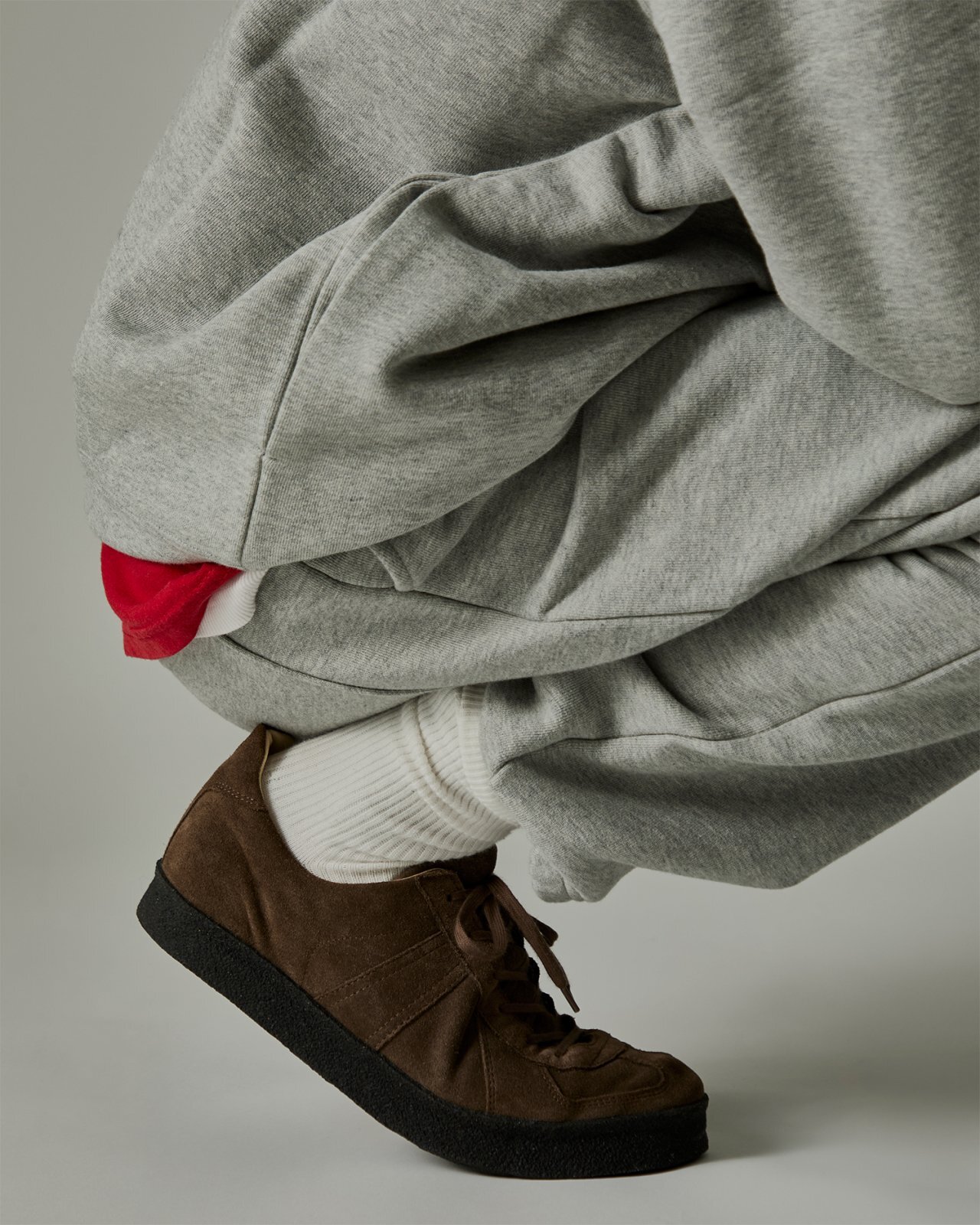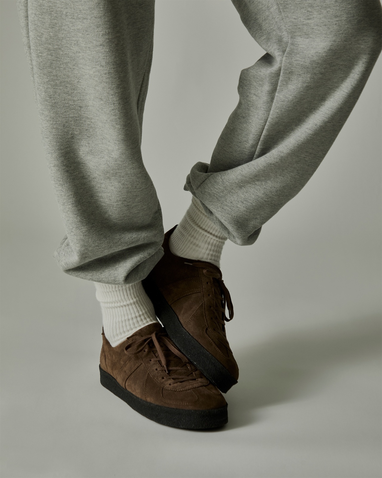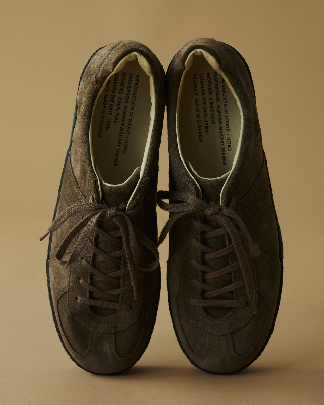 1970〜80年代に西ドイツ軍で室内用トレーニングシューズとして採用されていたジャーマントレーナーをベースに、〈REPRODUCTION OF FOUND〉の代表モデルを上質なレザーシューズへとアップデート。