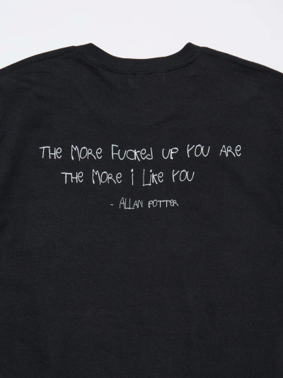 フロントに気鋭作家“アラン・ポッター”のフォト作品、背面に本人直筆のレターグラフィックをラバープリントで表現したデザイン。