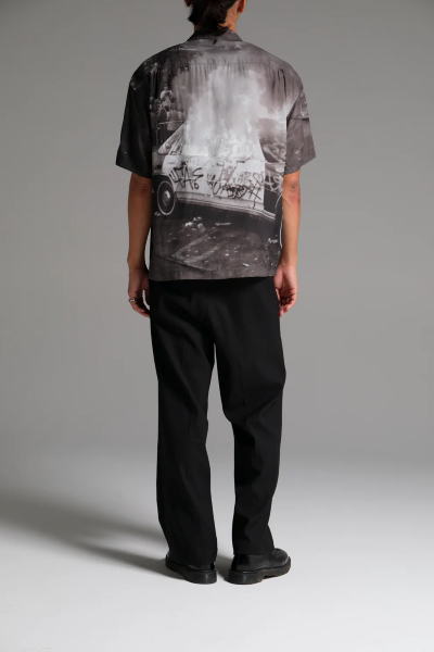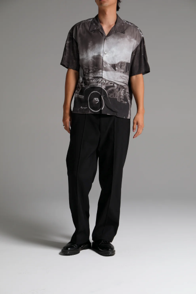 身頃全体に気鋭作家“アラン・ポッター”のフォト作品をインクジェットプリントで総柄表現したデザイン。