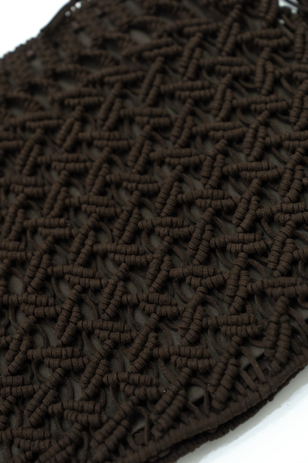 マクラメ編みのバックは編み模様がはっきりと見え凹凸があり、丈夫で形がしっかりとしている。