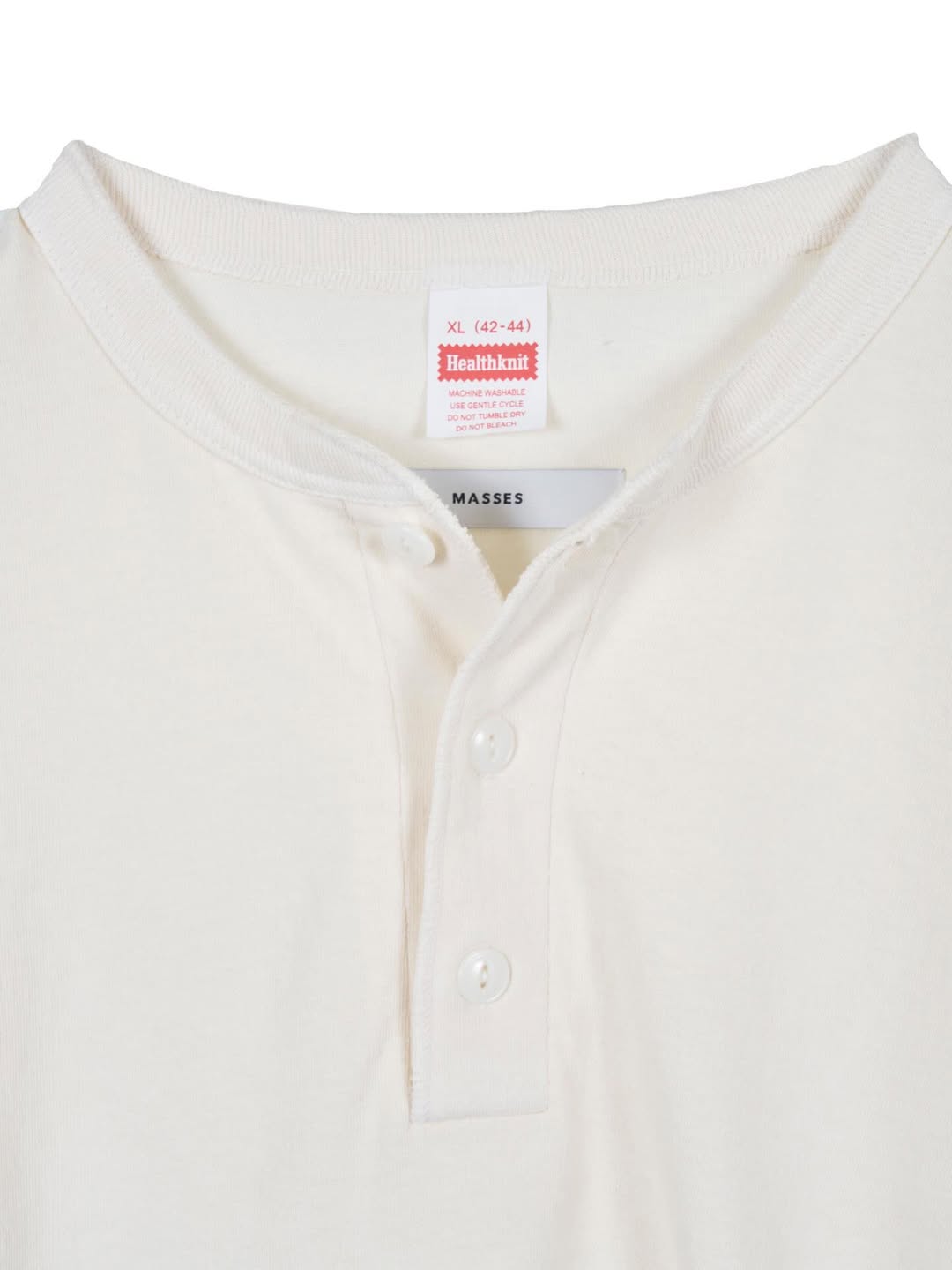 Healthknitに別注をかけた半袖ヘンリーネックTシャツ。